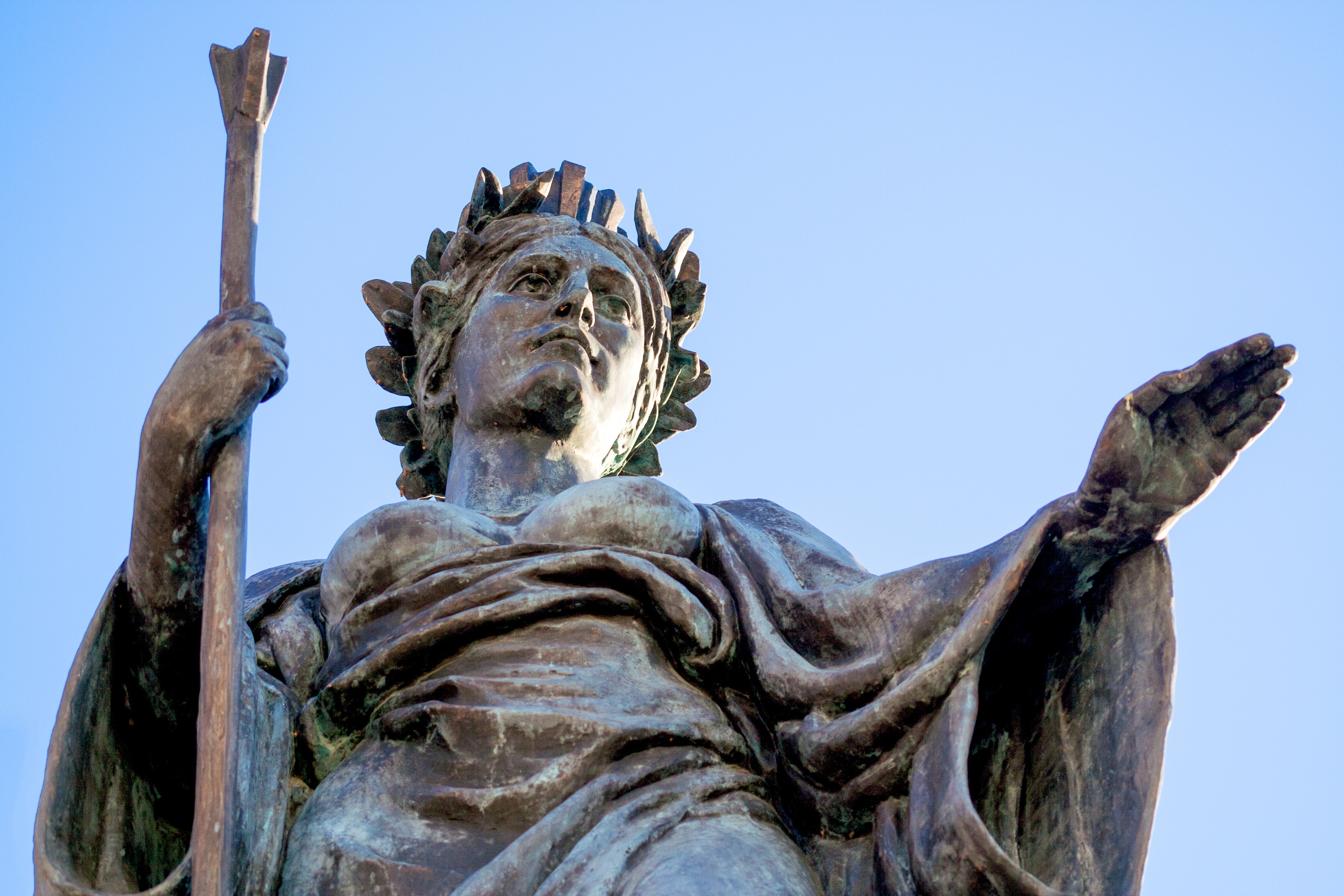 Free image/jpeg, Resolution: 3456x2304, File size: 2.37Mb, bottom view of stone woman statue picture with tags: city, stone, woman, antique, old town