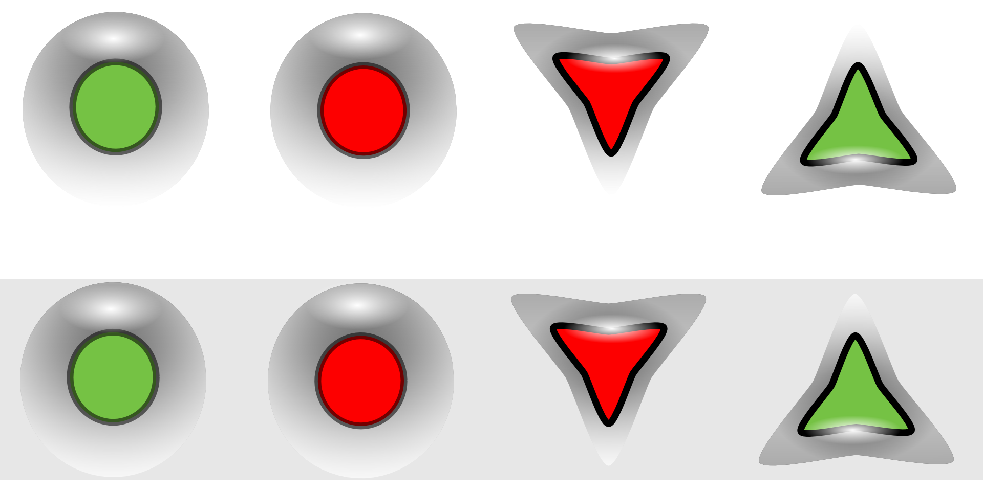 Free image/png, Resolution: 1920x960, File size: 280Kb, Green and red stop buttons picture with tags: stop button, green signal, signals, triangles, safety, warning, traffic, symbol