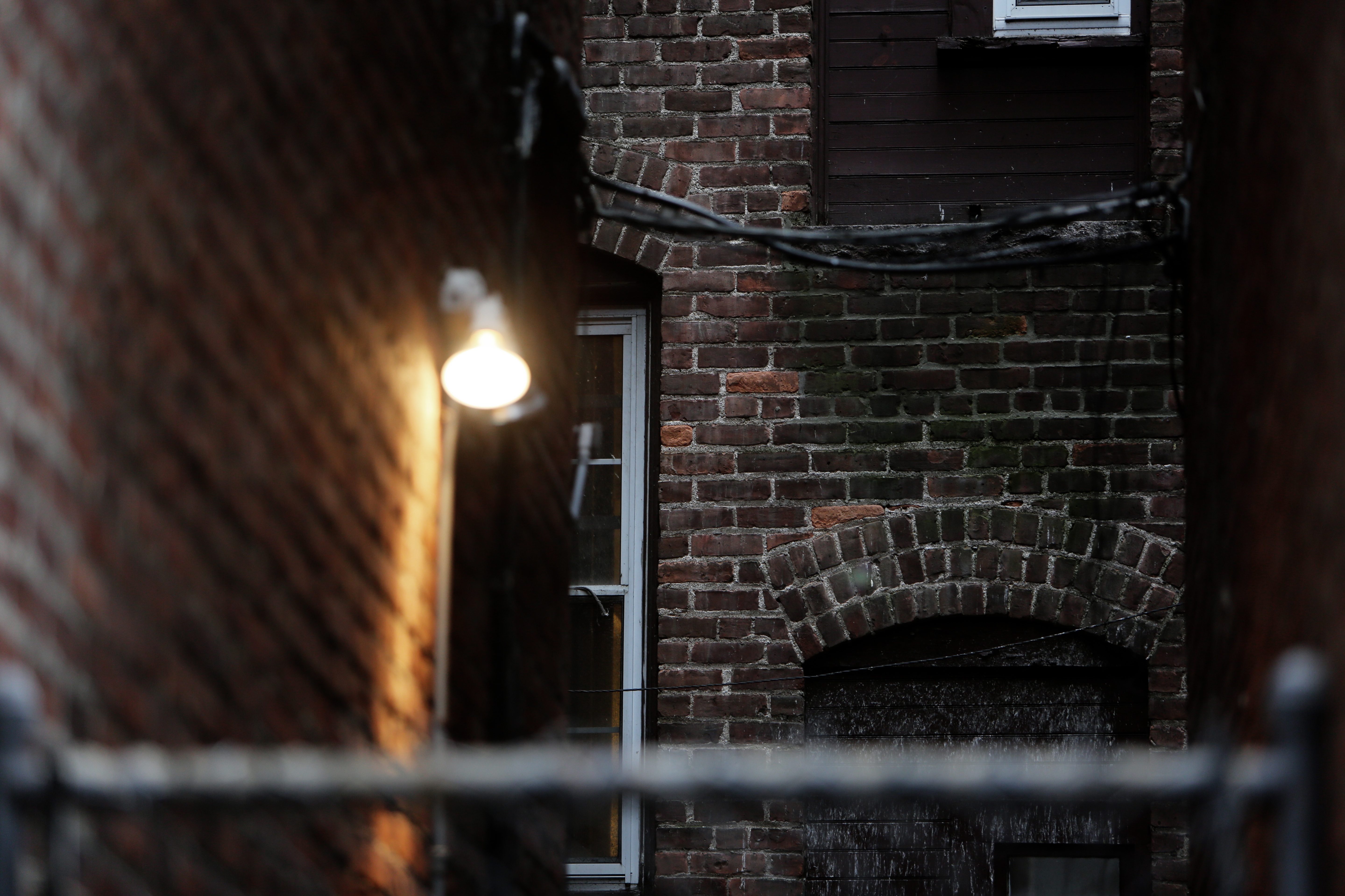 Free image/jpeg, Resolution: 5760x3840, File size: 3.95Mb, bricks walls in evening with light lamp picture with tags: bricks, walls, lamp, night, light, house, brickwall, masonry, building