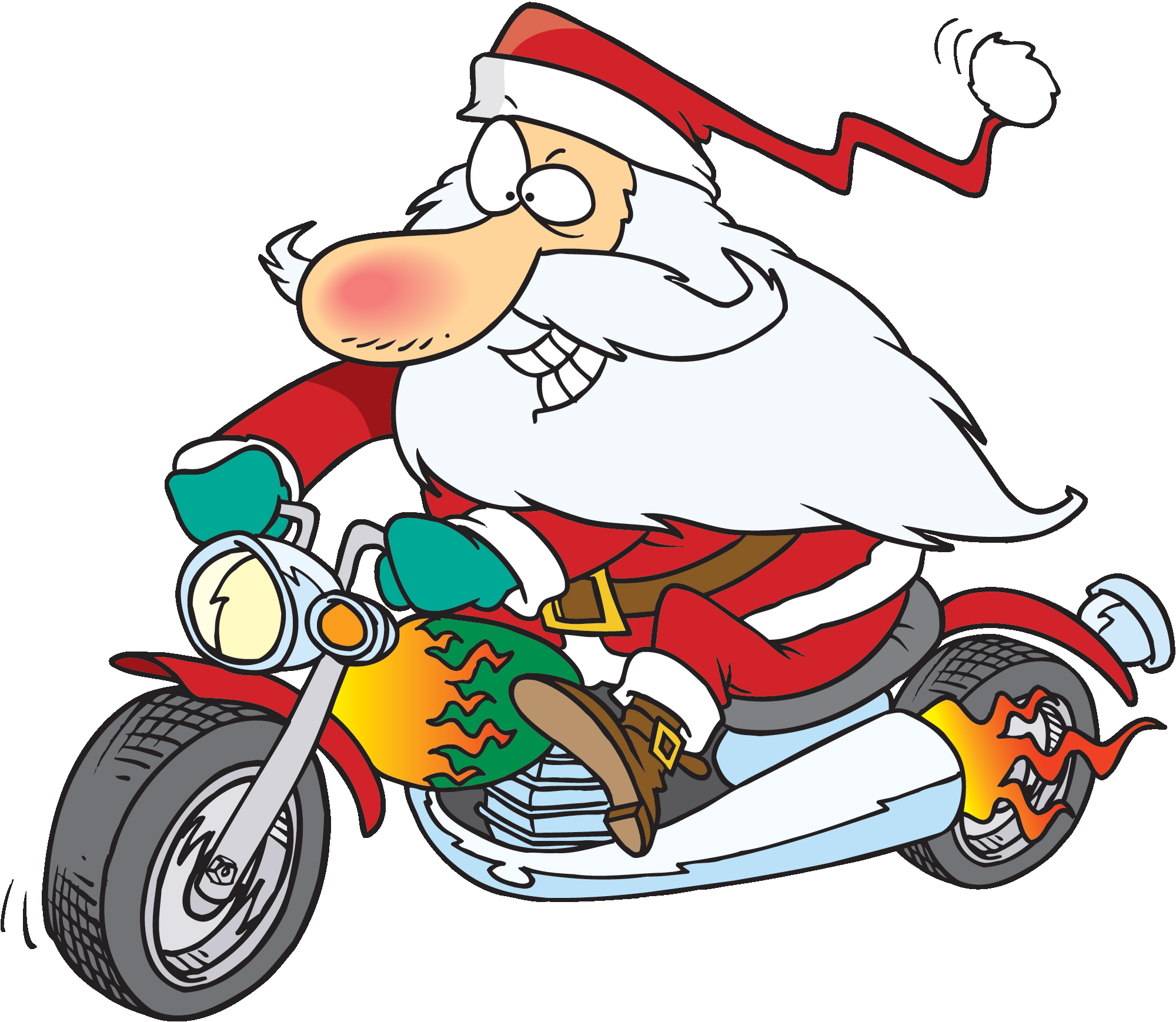 Free image/jpeg, Resolution: 2000x1738, File size: 730Kb, cartoon Santa Claus on a motorcycle picture with tags: motorcycle, harley, davidson, man