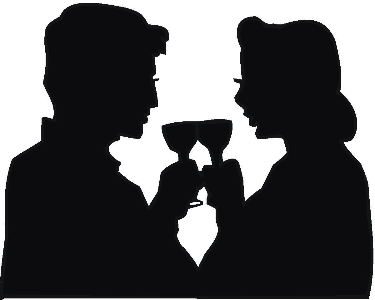 Man And Woman With Wine Glasses Together, Silhouette