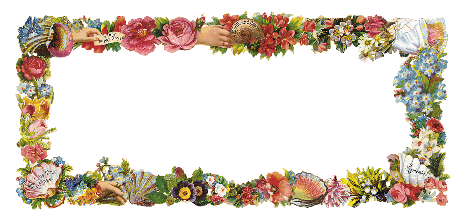 Free image/png, Resolution: 1600x759, File size: 1Mb, Clip art of Beach Frame picture with tags: clip art, beach, frame, flower, seashell, hand