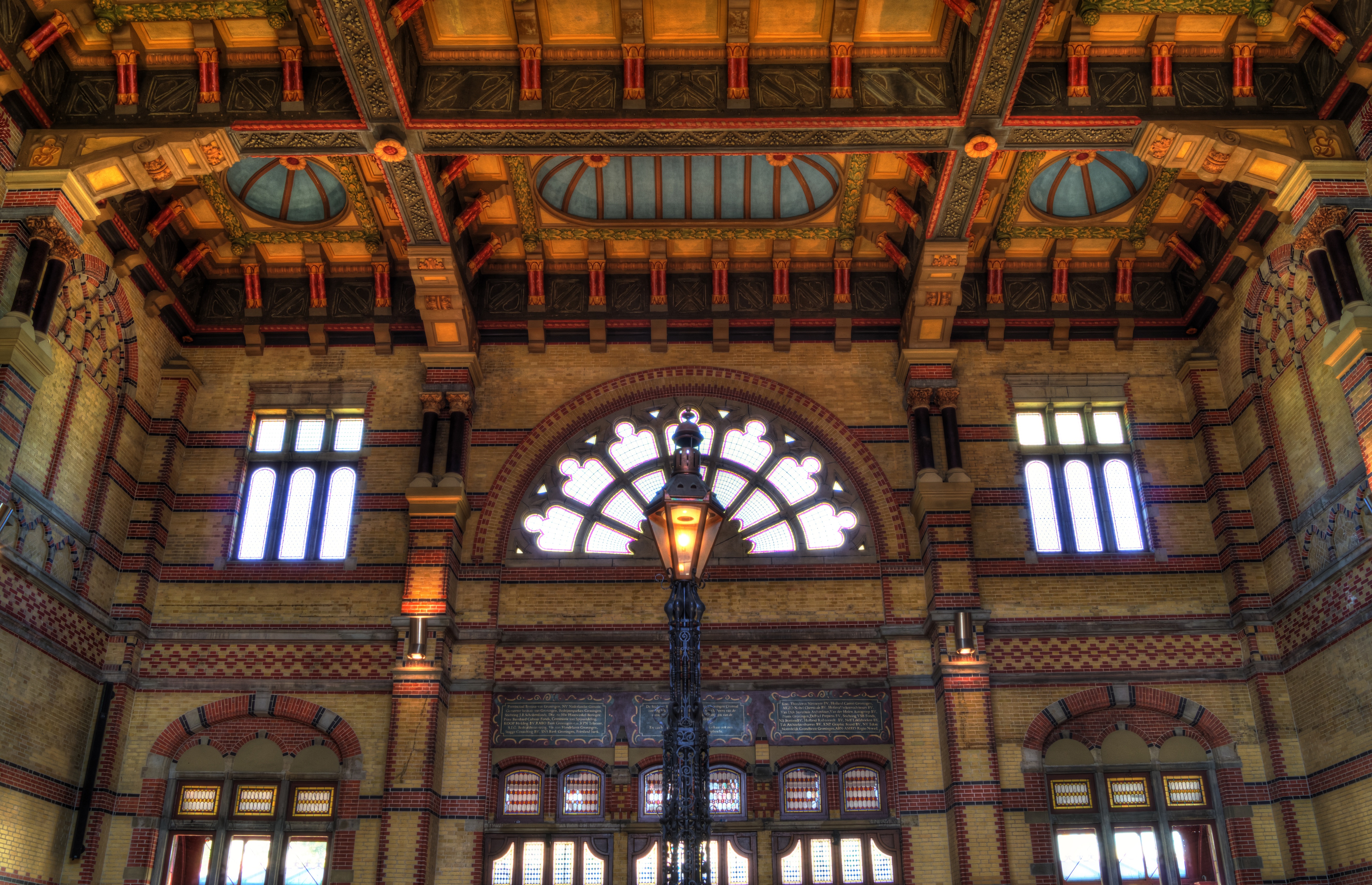 Free image/jpeg, Resolution: 5310x3425, File size: 4.78Mb, artful walls and ceiling at train station picture with tags: station, train, ceiling, lantern, transportation, windows, building, architecture