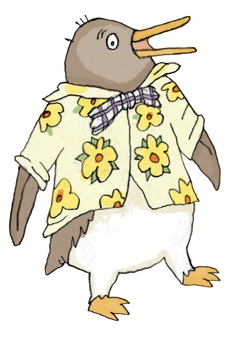 Free image/png, Resolution: 786x1086, File size: 706Kb, drawn penguin in a hawaiian shirt picture with tags: penguin, collor, flower, hawaiian, shirt, yellow