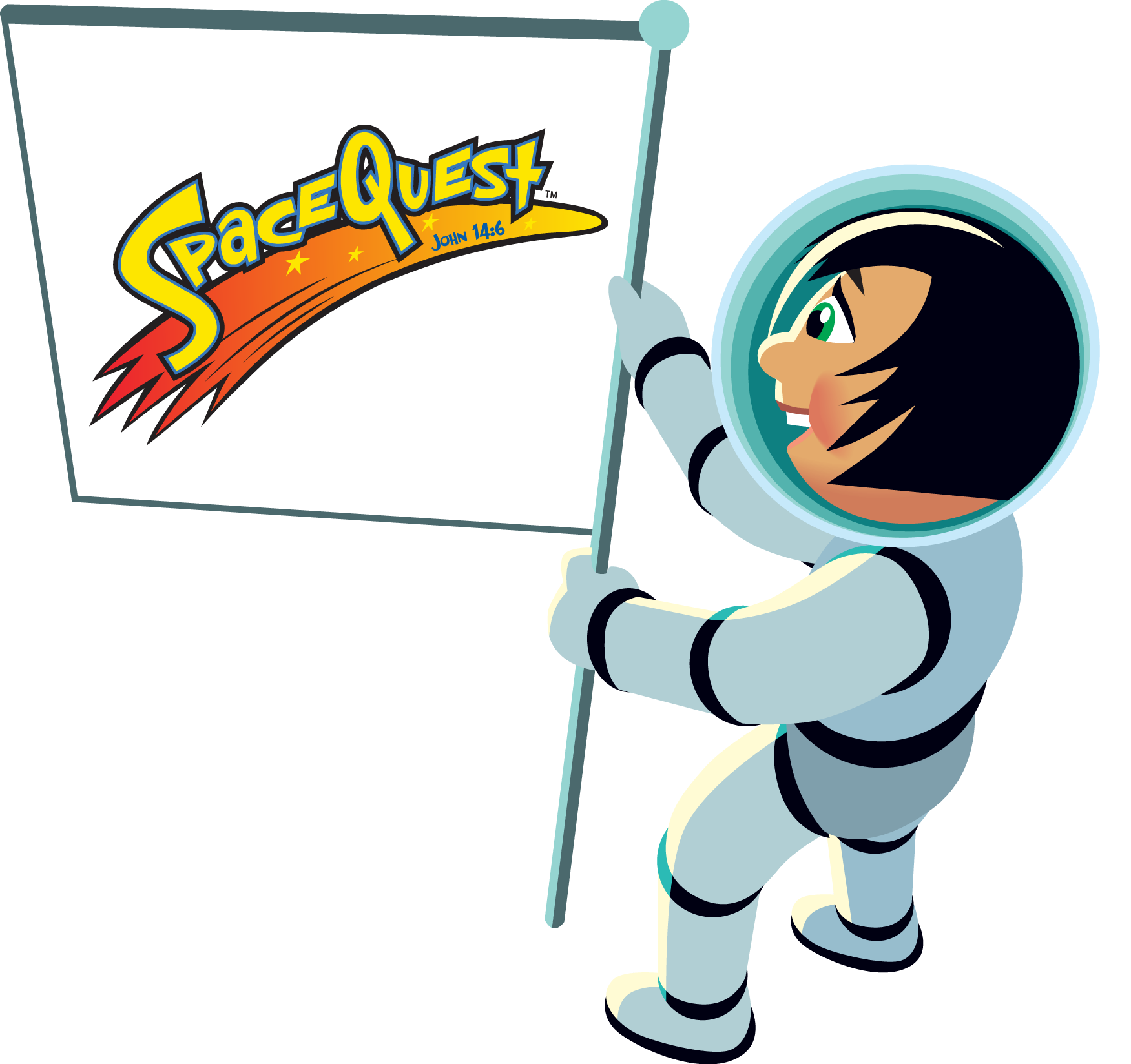 Cartoon Astronaut With Flag, Space Quest, Banner