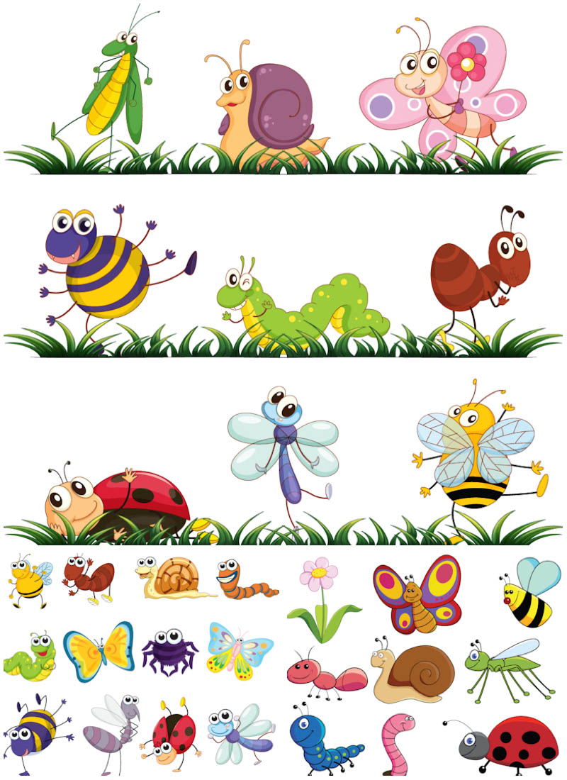 Free image/jpeg, Resolution: 800x1100, File size: 168Kb, different insects as graphic elements for clipart picture with tags: clip art, cartoon, bugs, different, elements