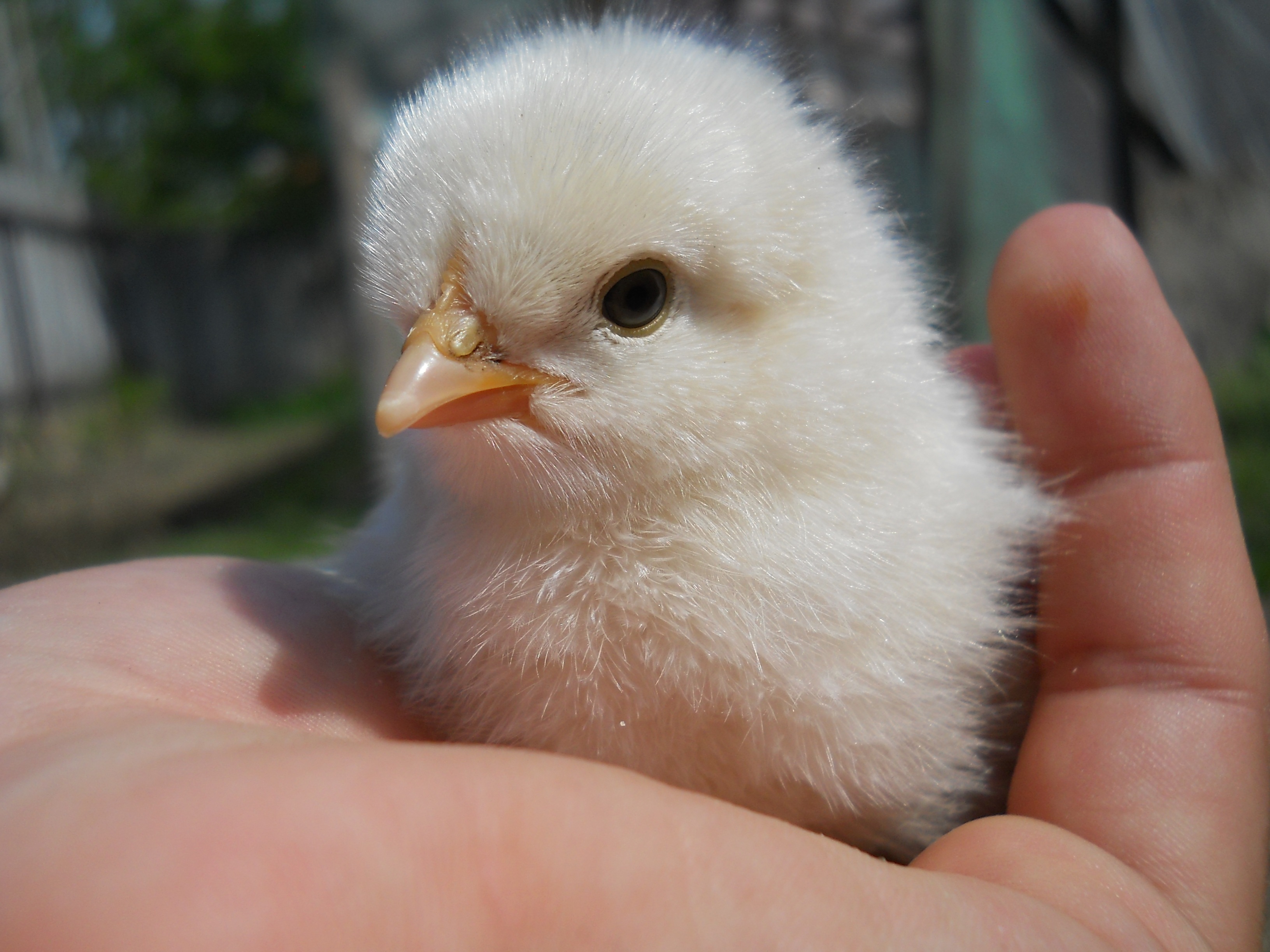 Free image/jpeg, Resolution: 3264x2448, File size: 1.17Mb, human hand is holding a little chicken picture with tags: chicken, nature, animals, white, fluffy, little