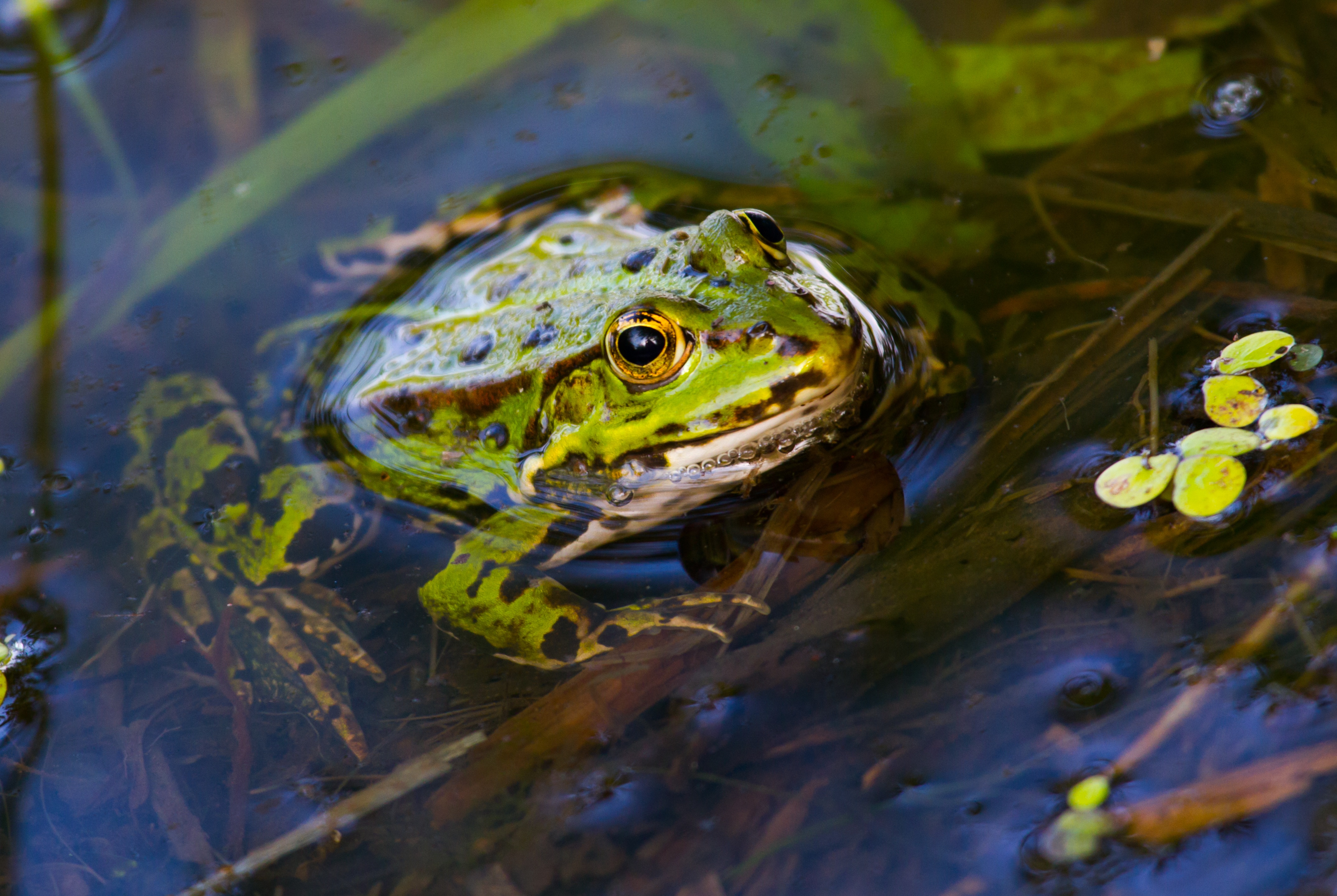 Free image/jpeg, Resolution: 4300x2882, File size: 2.6Mb, Green frog, Amphibian close up picture with tags: frog, amphibian, green, close, water, clear