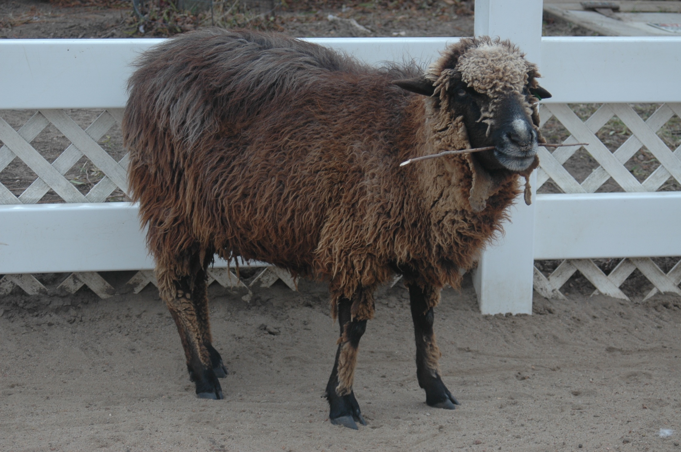 Free image/jpeg, Resolution: 2240x1488, File size: 857Kb, brown sheep near the white fence picture with tags: sheep, brown, wool