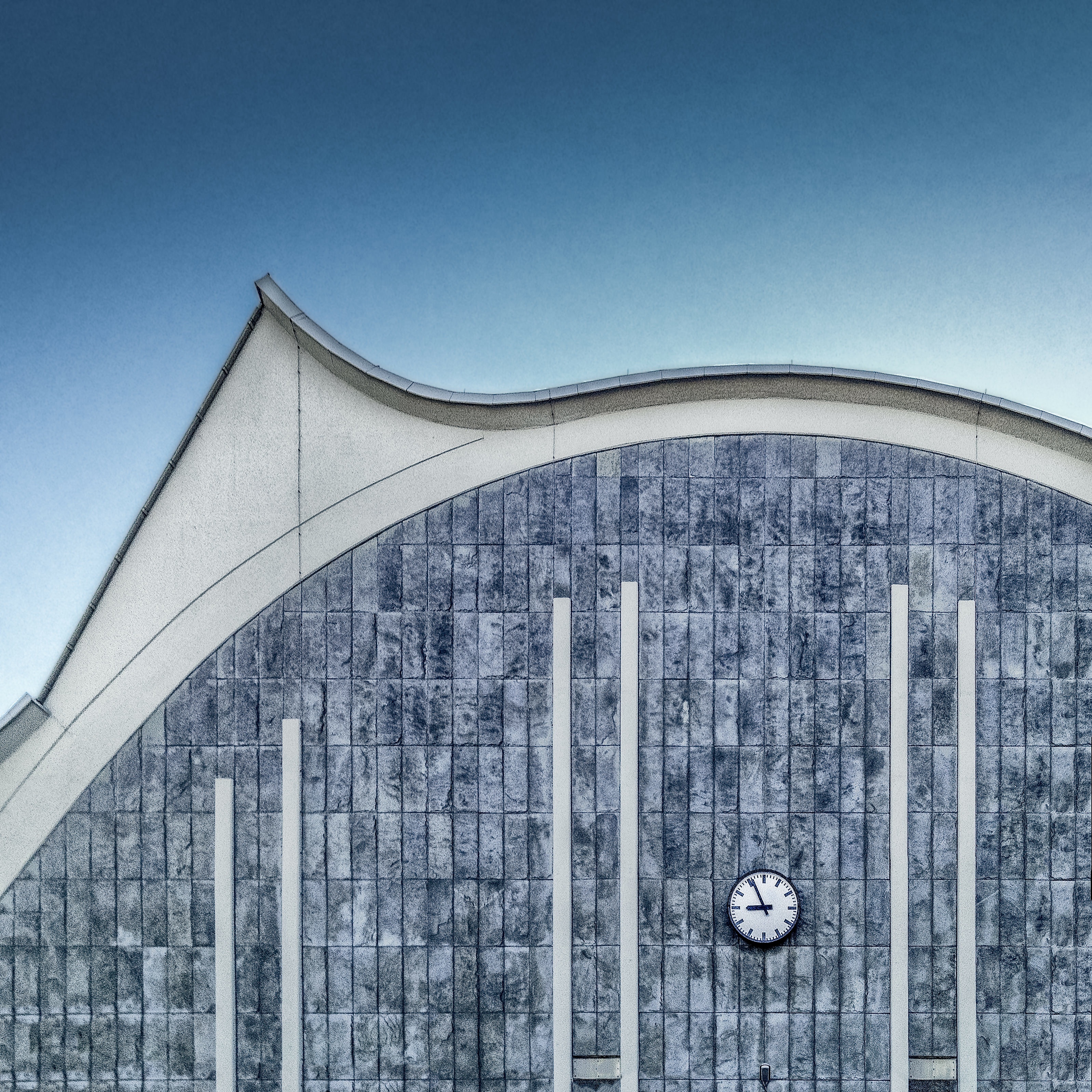 Free image/jpeg, Resolution: 3196x3196, File size: 3.15Mb, unusual facade of a building with a clock picture with tags: building, clock, exterior, circular, stone, bricks