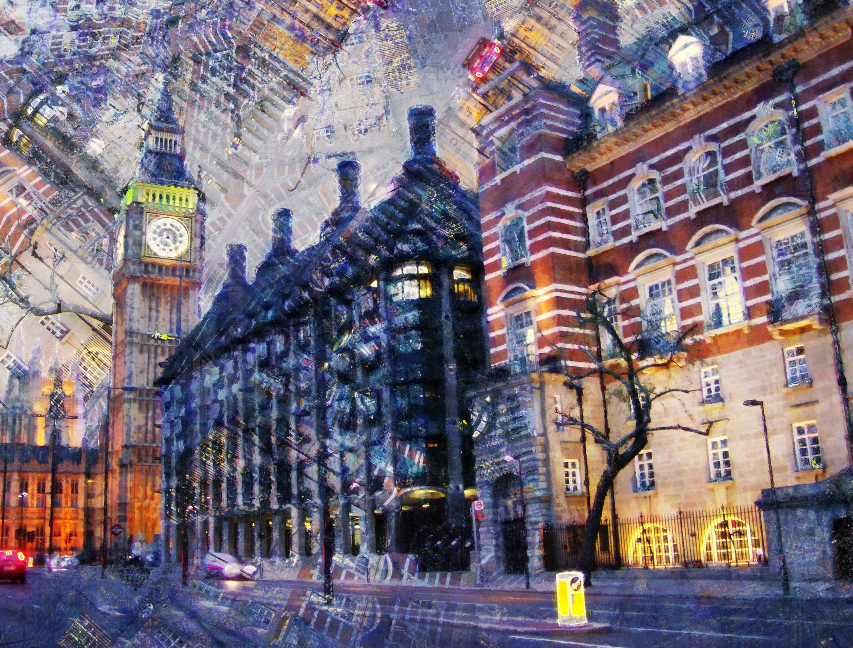 Free image/jpeg, Resolution: 2800x2128, File size: 2.48Mb, London landmarks at Street, digital art picture with tags: london, street, city, buildings, big ben