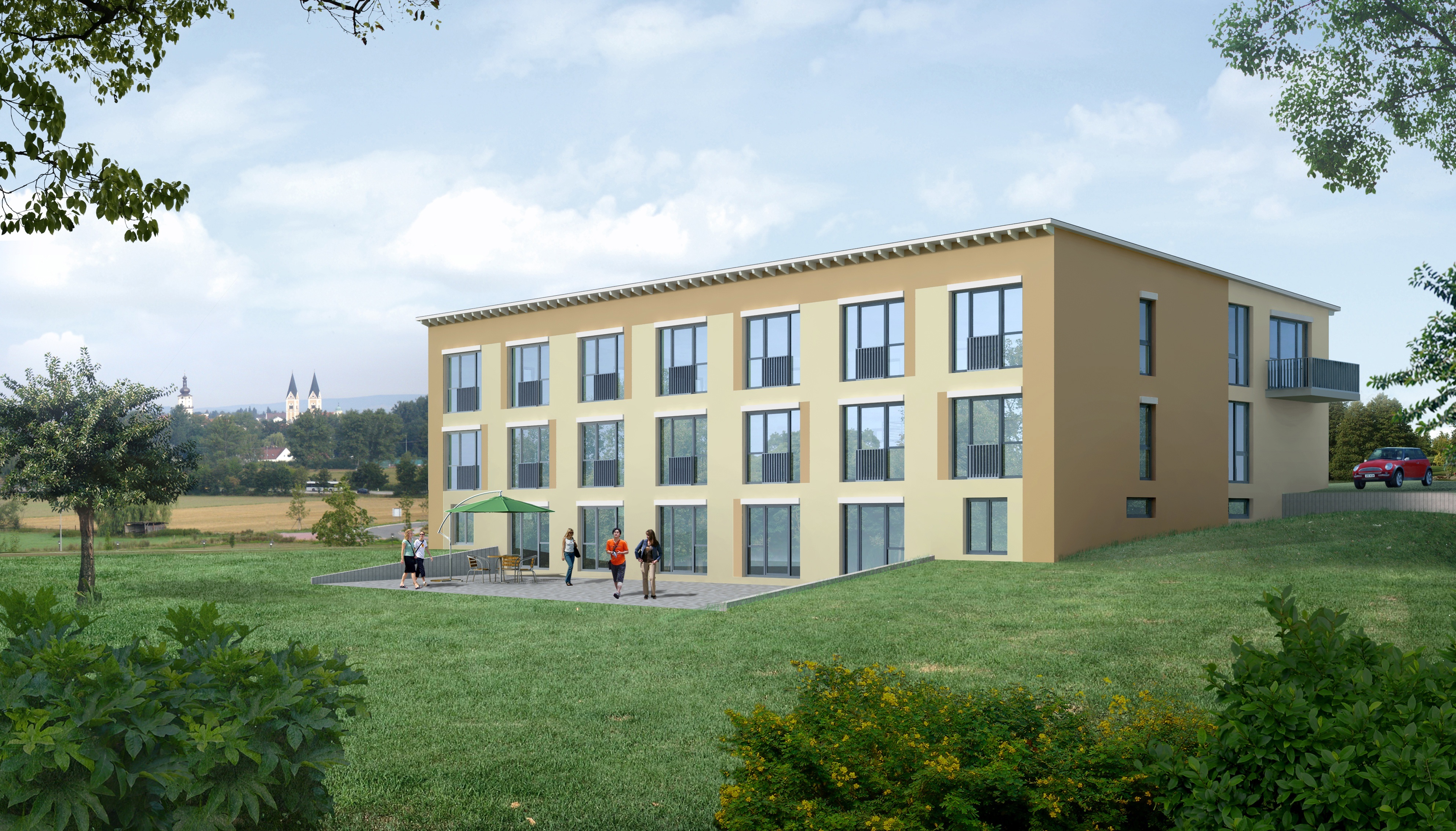 3d rendering of a building on green grass