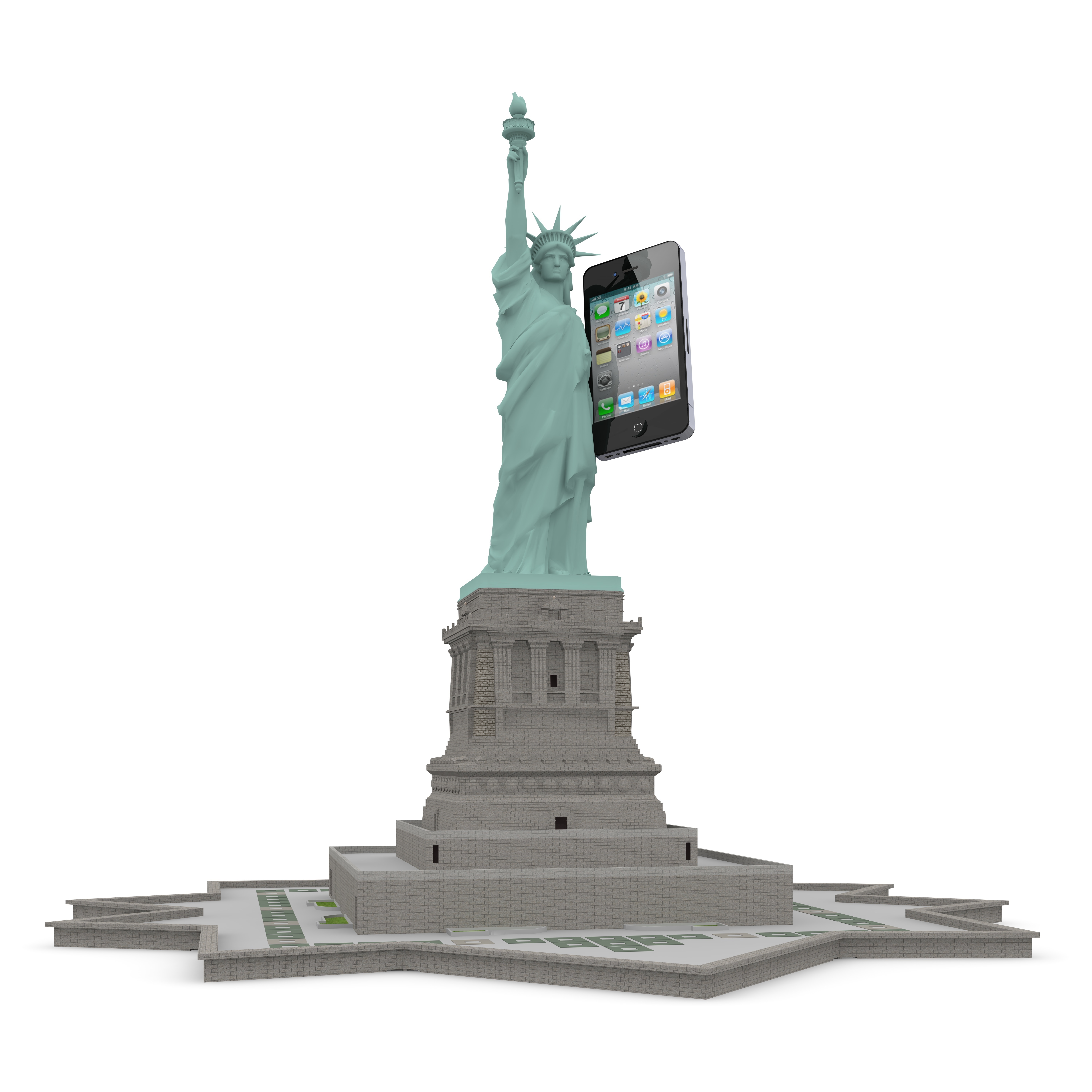 Free image/jpeg, Resolution: 6000x6000, File size: 2.16Mb, statue of liberty with mobile phone monument picture with tags: smartphone, new york, new york city, freedom, america