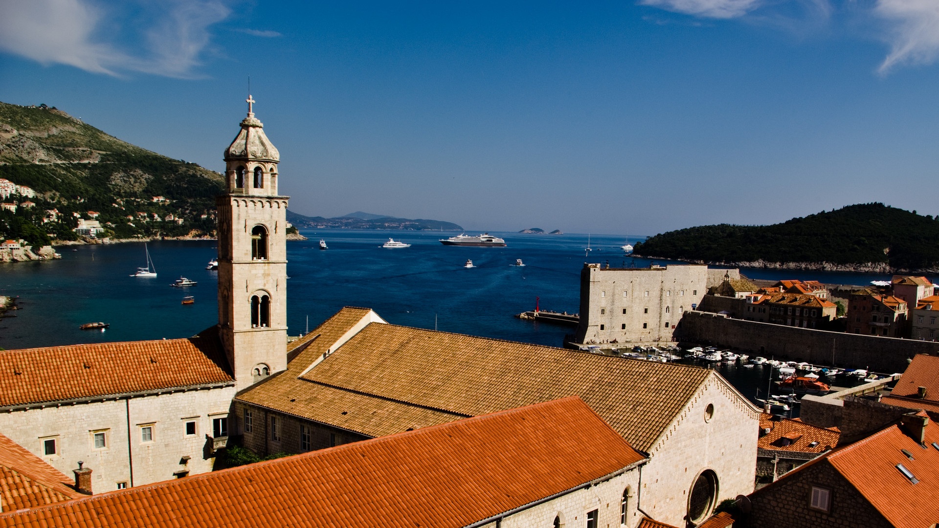 Free image/jpeg, Resolution: 1920x1080, File size: 659Kb, orange roofs of Dubrovnik picture with tags: roofs, orange roofs, brown roofs, dubrovnik, island, ships, adriatic