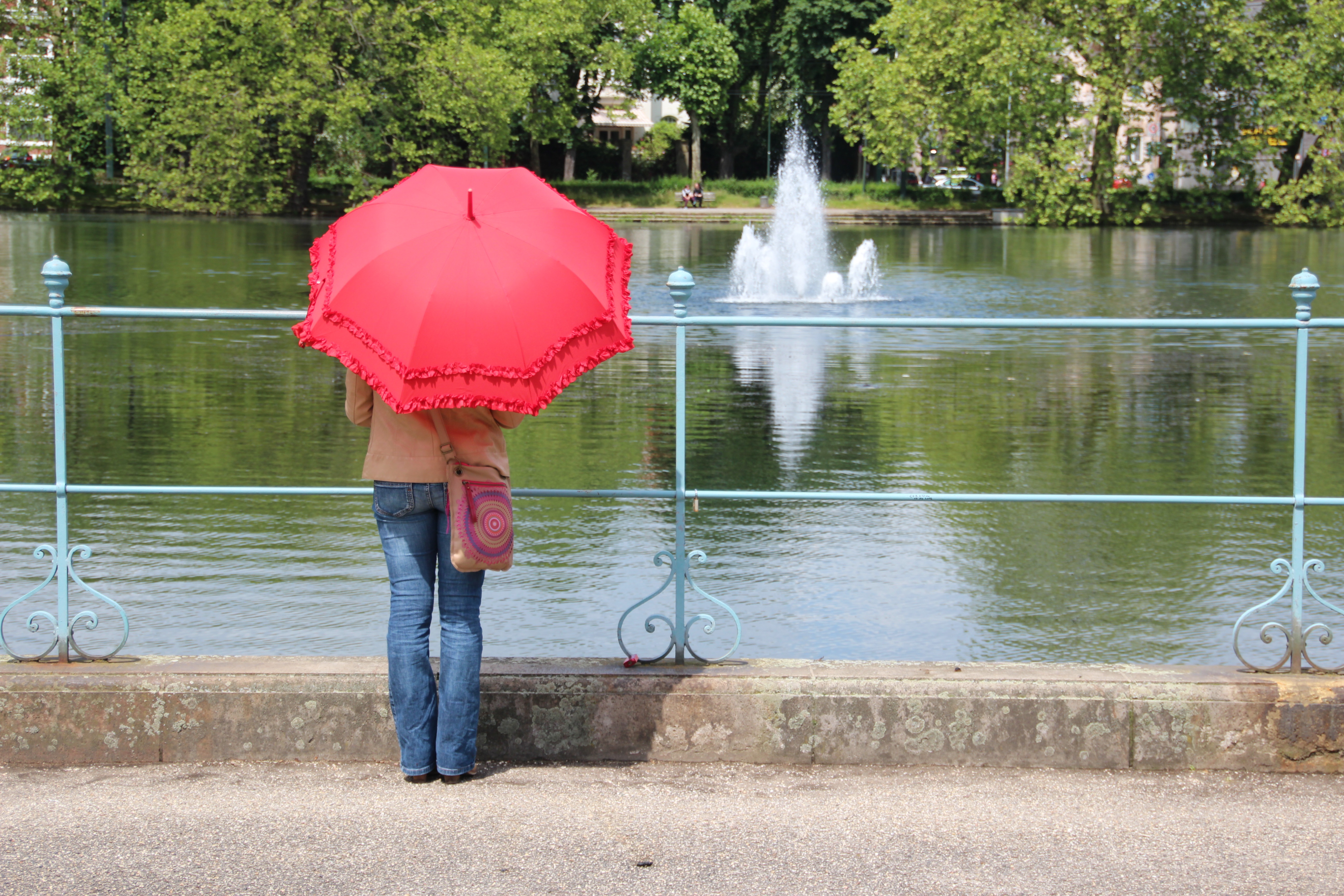 Free image/jpeg, Resolution: 5184x3456, File size: 4.11Mb, woman with red umbrella picture with tags: castle benrath, pond, water feature, castle, düsseldorf, historically