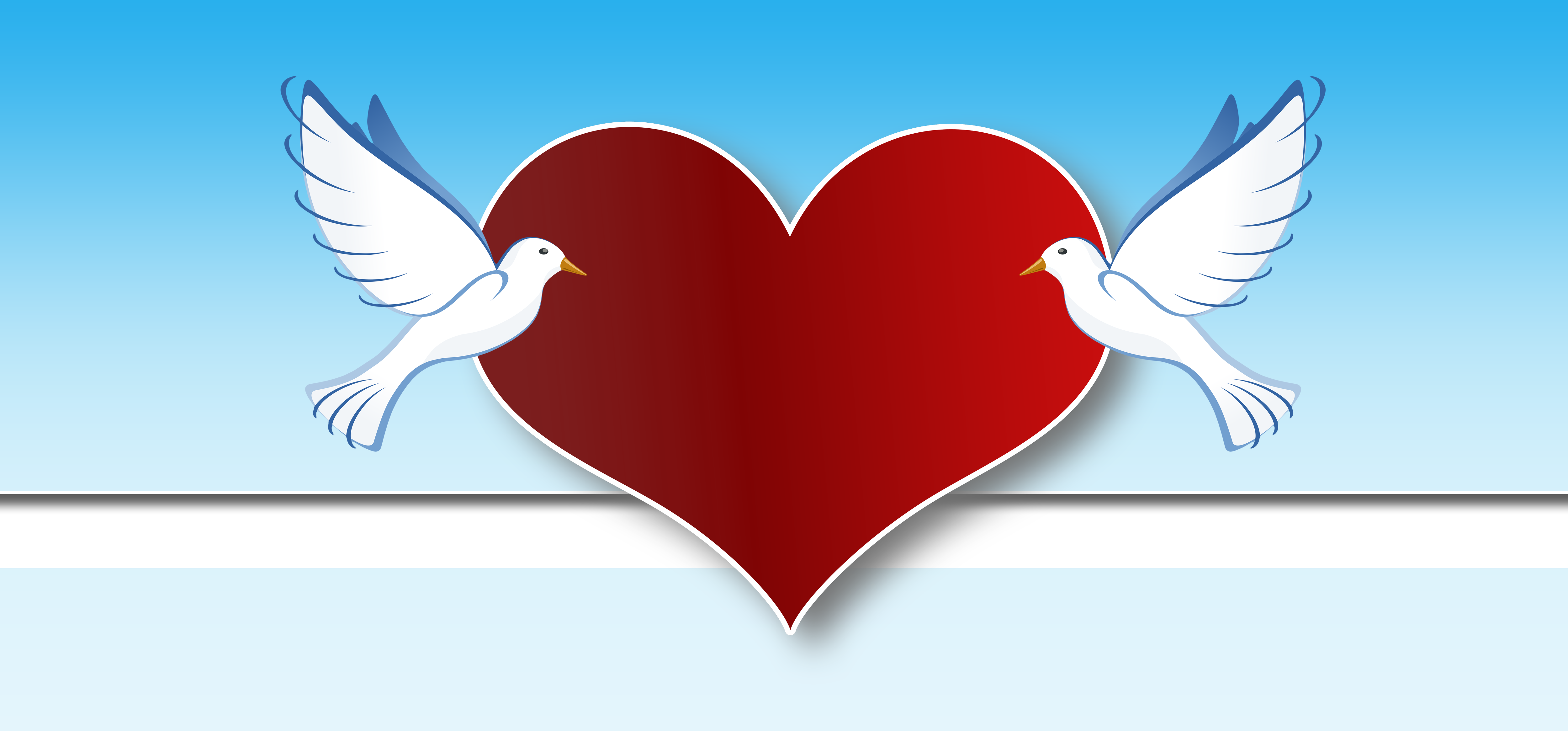 Free image/png, Resolution: 5000x2330, File size: 706Kb, heart and white doves drawing picture with tags: love, heart, harmony, affection, peace dove