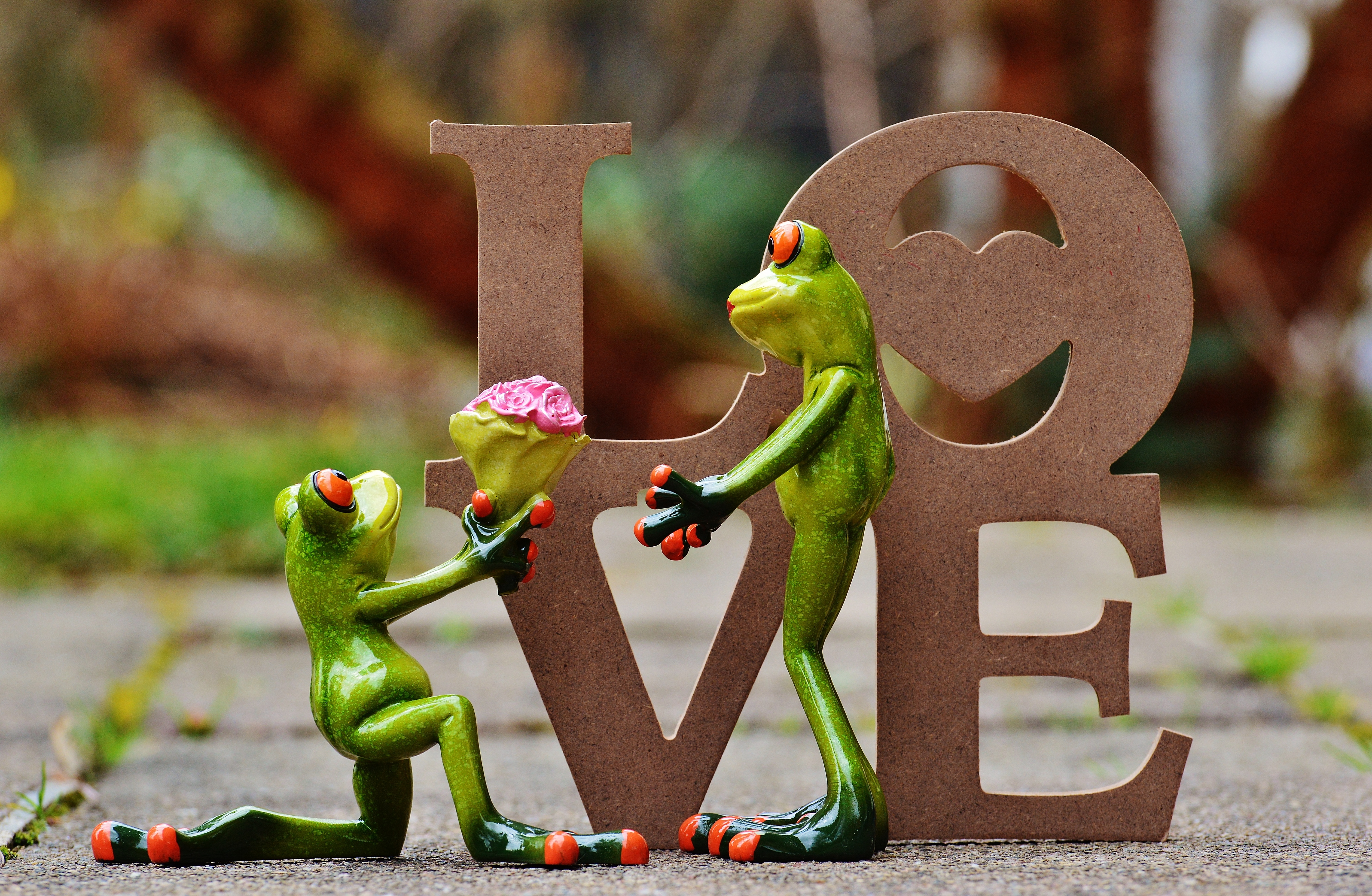 Free image/jpeg, Resolution: 5938x3880, File size: 6.54Mb, figure of green frogs showing marriage proposal picture with tags: i beg your pardon, marriage proposal, excuse me, frog, sweet