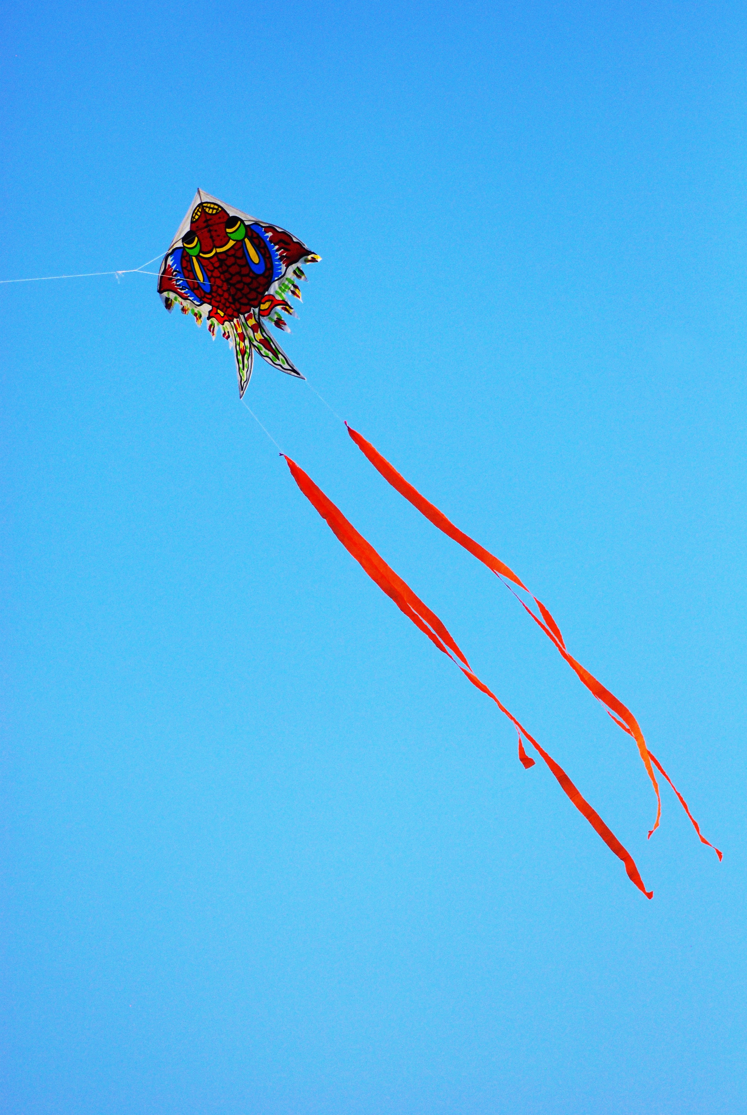 Free image/jpeg, Resolution: 2592x3872, File size: 2.65Mb, kite flying in the bright blue sky picture with tags: kite, blue sky, colorful, happiness, activity