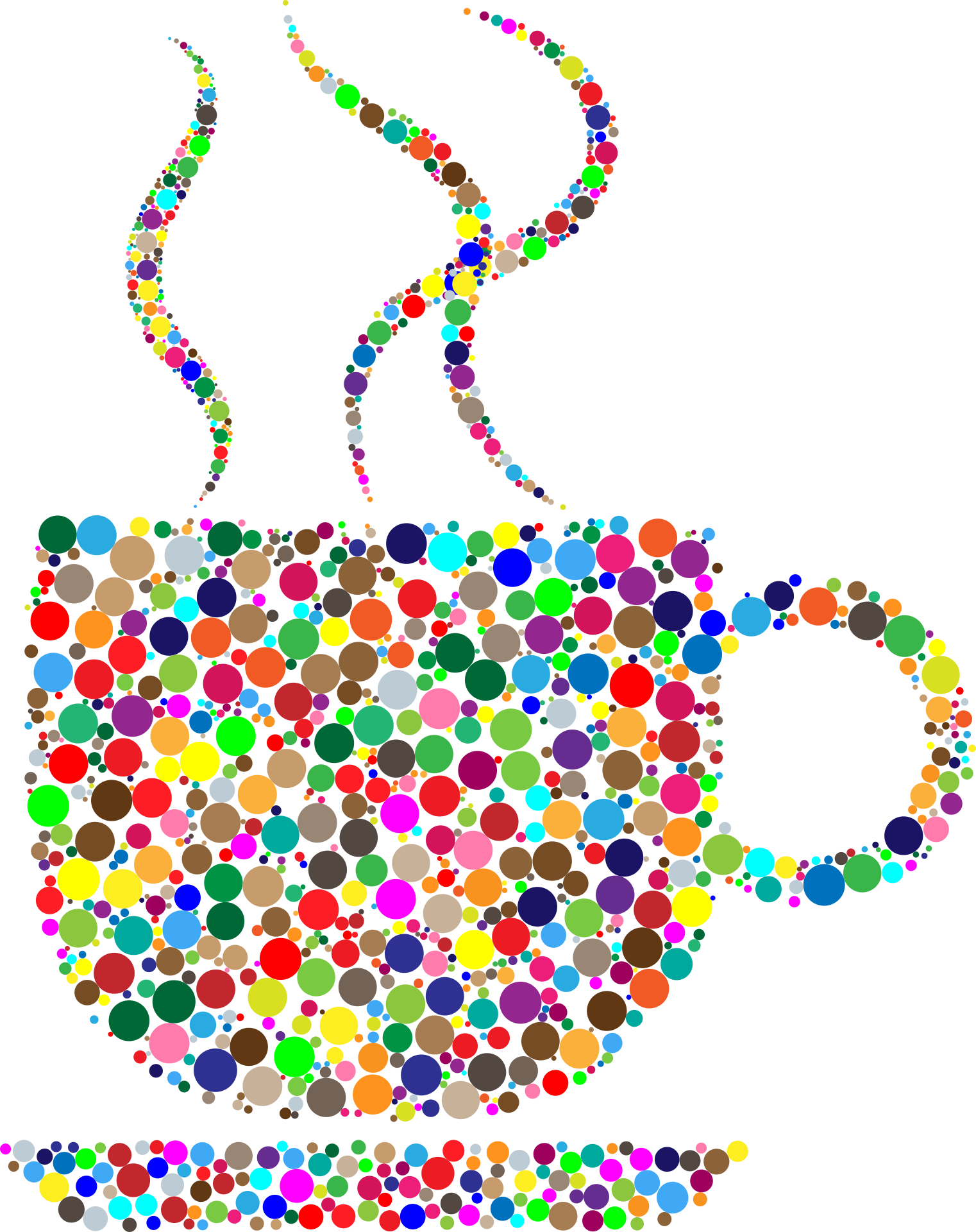 Free image/png, Resolution: 1522x1920, File size: 601Kb, colorful image of a cup of coffee picture with tags: coffee, steam, beverage, drink, dots, colorful, geometric, abstract