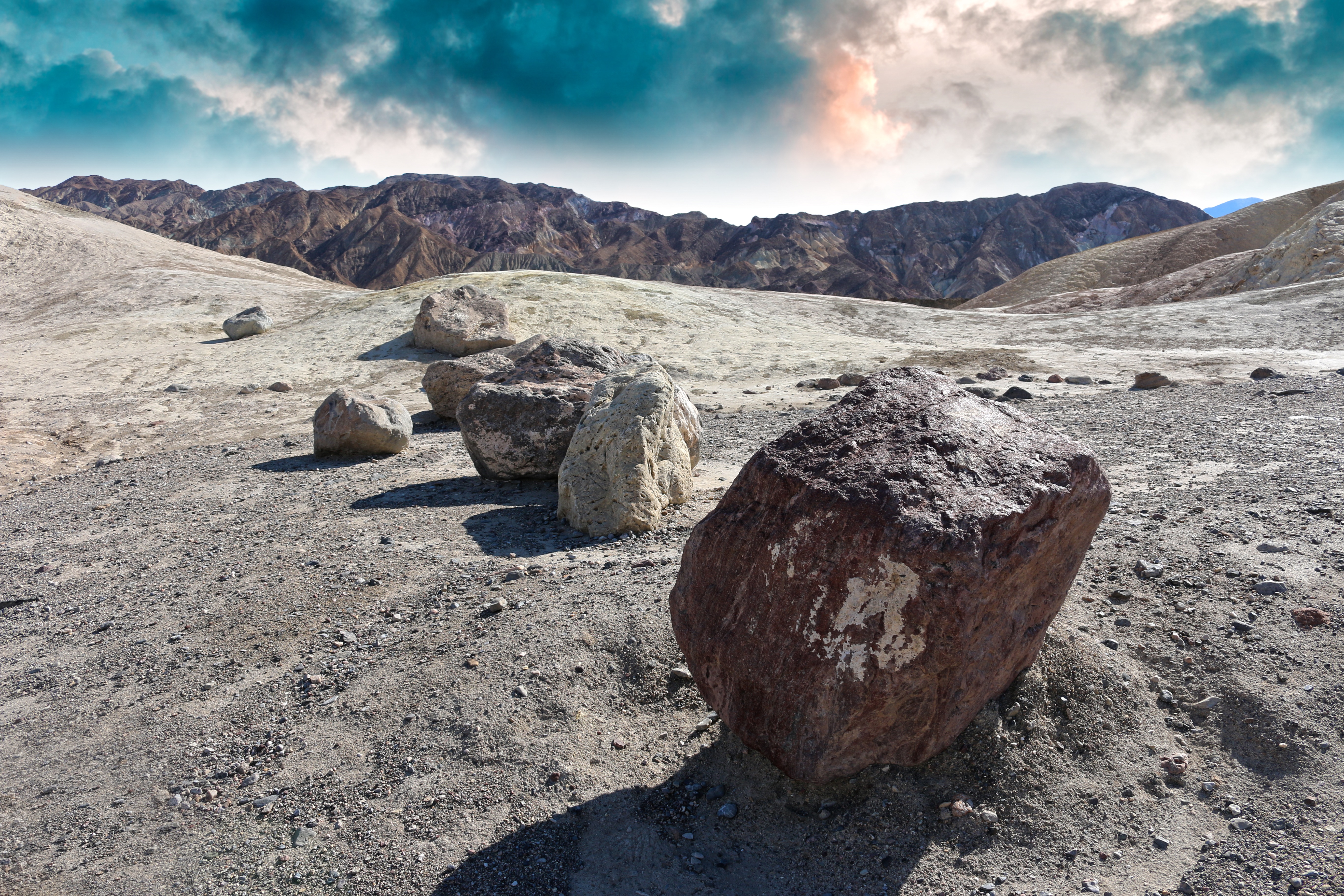 Free image/jpeg, Resolution: 5472x3648, File size: 7.31Mb, rocky landscape in california national park on a sunny day picture with tags: death valley, california, landscape, national, park, desert, scenic, colorful