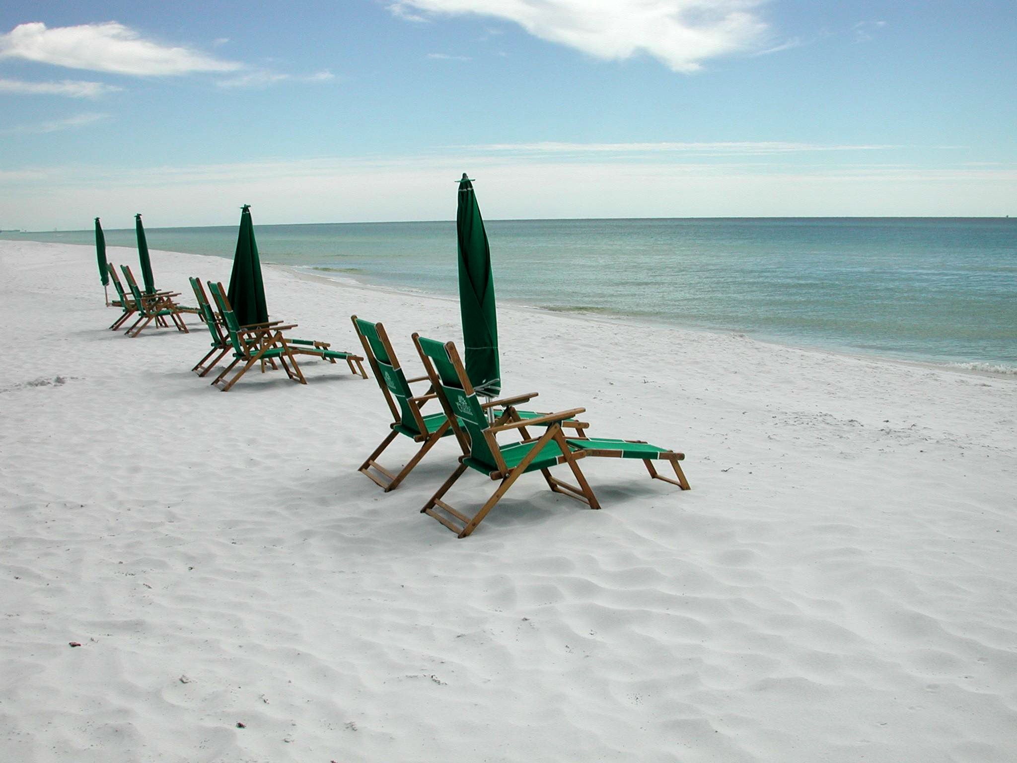 Free image/jpeg, Resolution: 2048x1536, File size: 325Kb, gorgeous sandy beach on the gulf coast in florida picture with tags: beach, chairs, leisure, outdoors, vacation, tourism