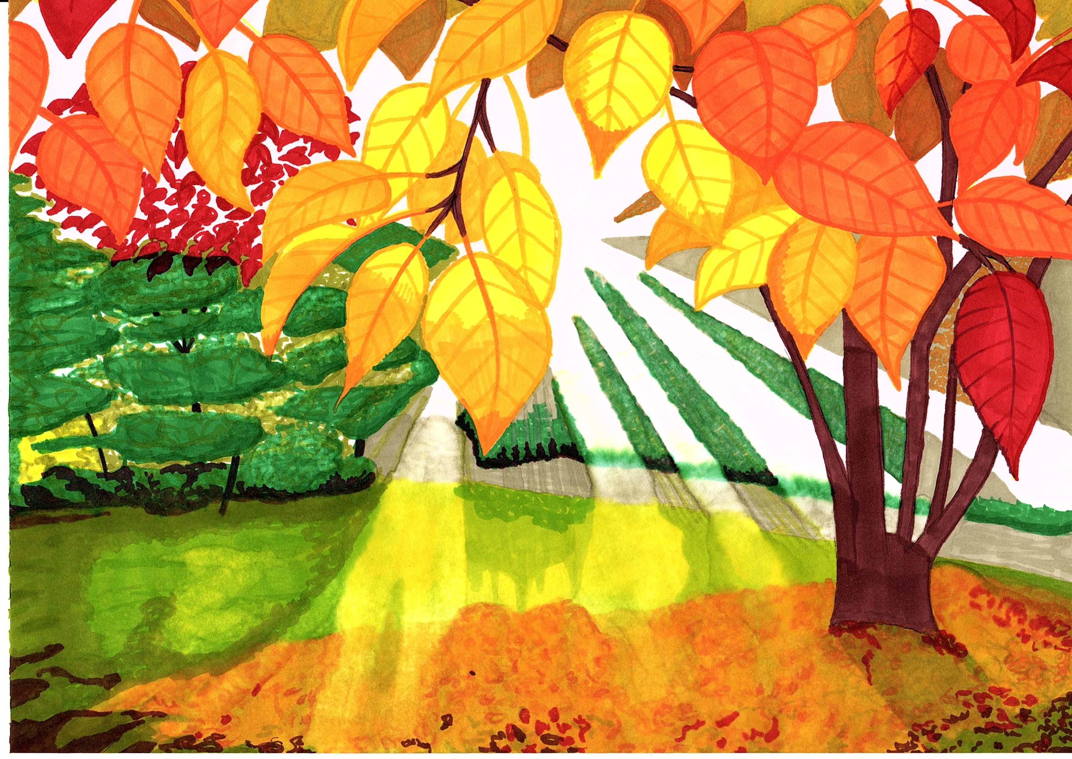 Free image/jpeg, Resolution: 3501x2478, File size: 2.11Mb, Drawing Nature Fall picture with tags: landscape, drawing, colors