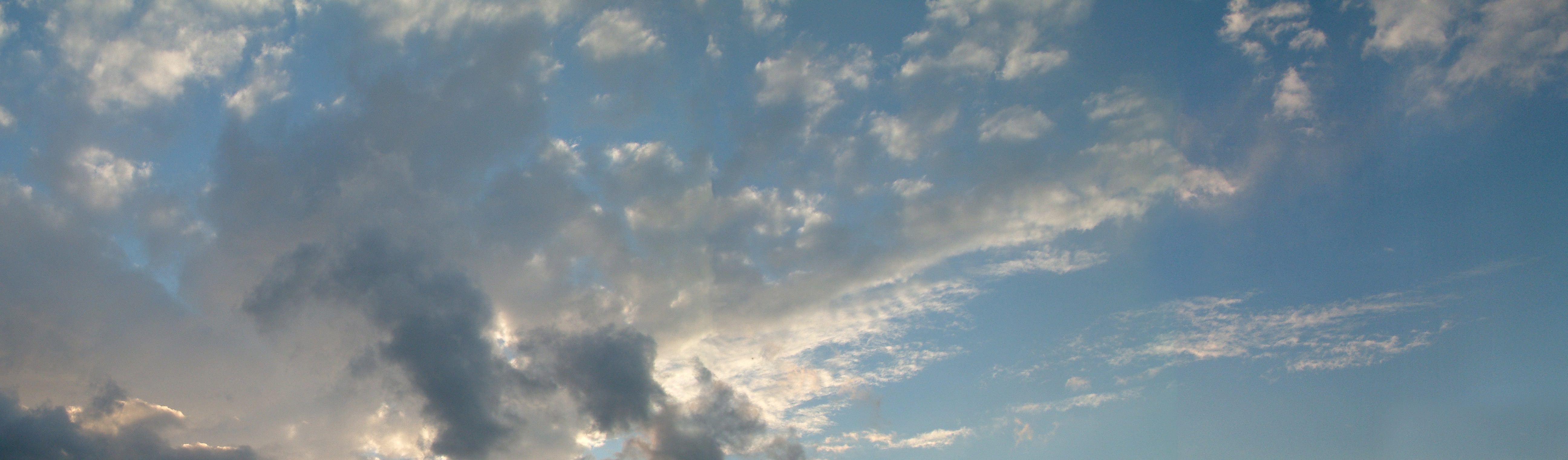 Free image/jpeg, Resolution: 5184x1520, File size: 964Kb, blue sky with white cumulus clouds in summer picture with tags: clouds, light, blue, clouds sky, sky clouds