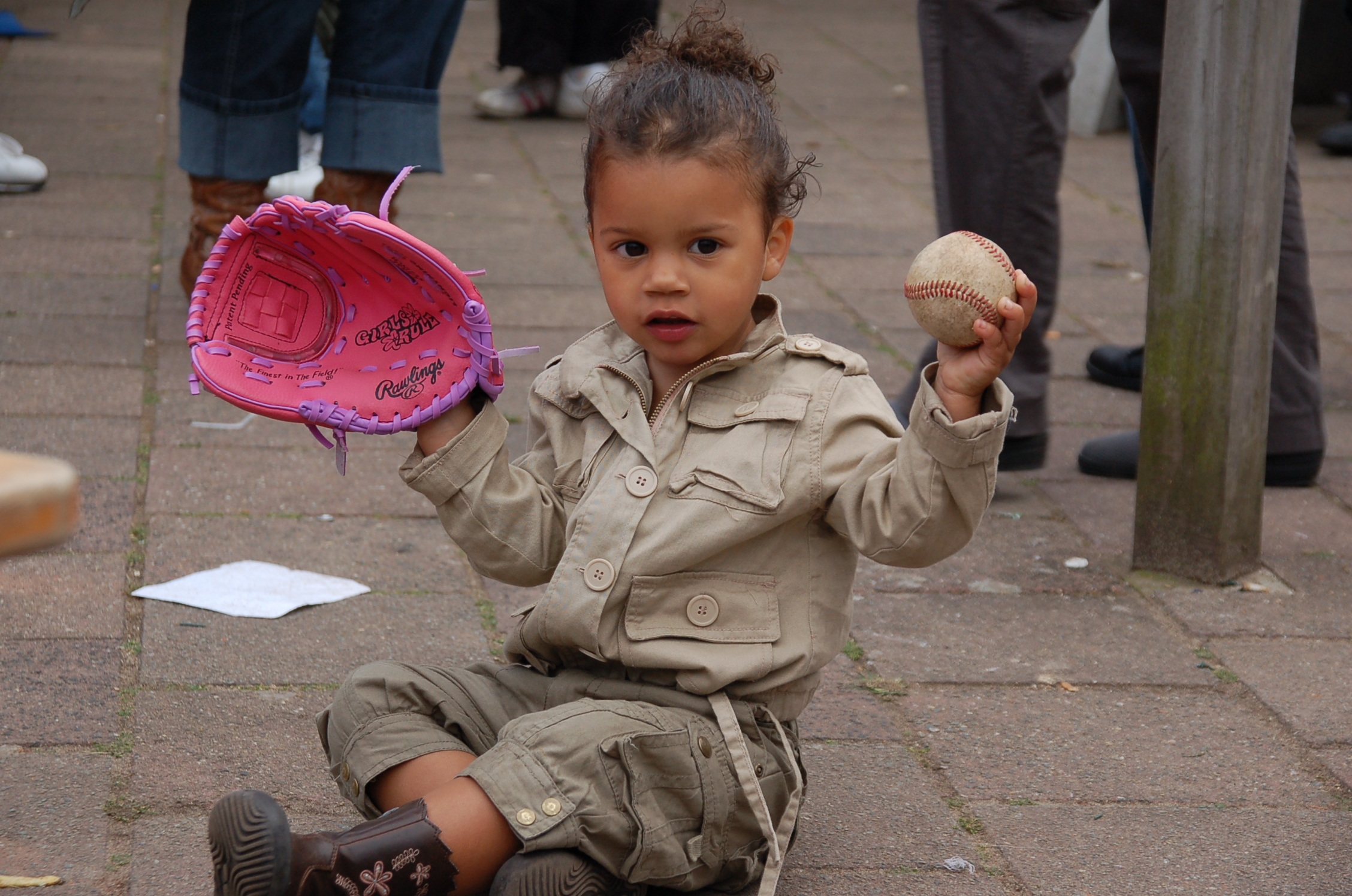 Free image/jpeg, Resolution: 2256x1496, File size: 876Kb, child in a baseball glove with a ball picture with tags: baseball, ball, glove, child, pink, play