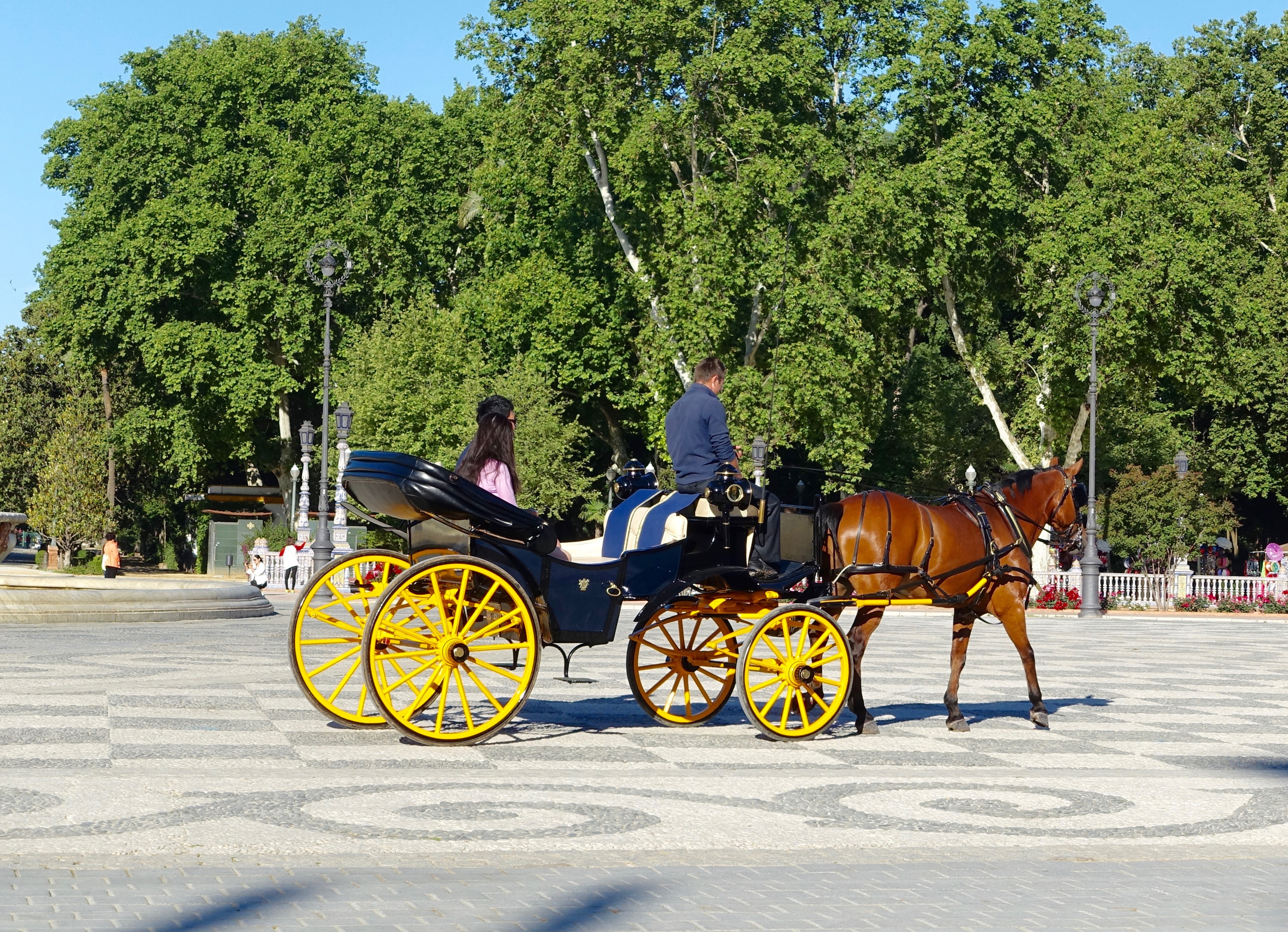 Free image/jpeg, Resolution: 4043x2925, File size: 5.02Mb, horse and tourist cart in the square picture with tags: horse and cart, carriage, traditional, transport, retro, coach