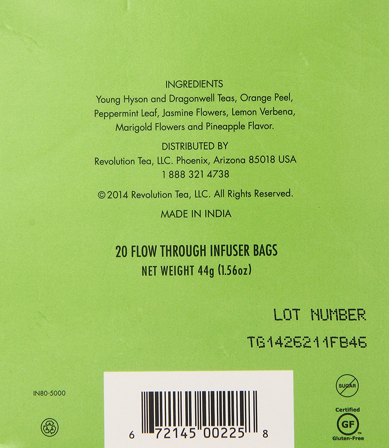 Free image/jpeg, Resolution: 1305x1500, File size: 567Kb, Revolution Tea Tropical Green Teabags, 20 Count N3 picture with tags: revolution tea, grocery and gourmet food, coffee, tea and beverages, green