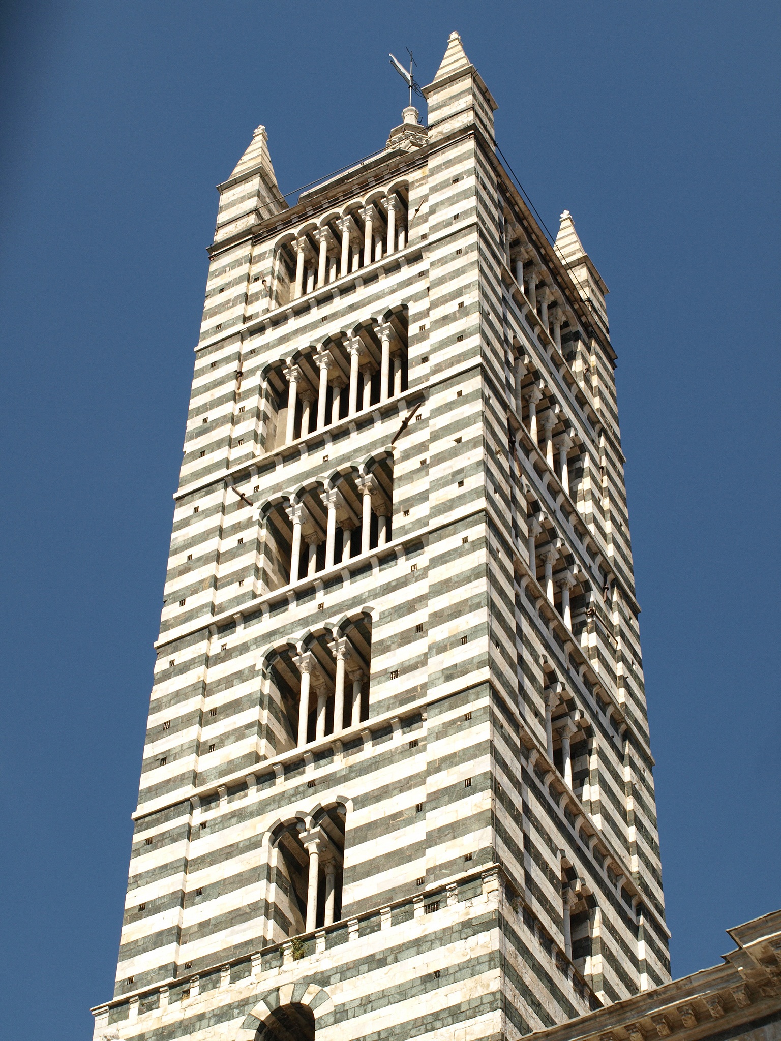 Free image/jpeg, Resolution: 1536x2048, File size: 1.09Mb, Manja Tower, Siena, Tuscany picture with tags: campanile, siena, architecture, marble, romanesque, building, tuscany, Manja Tower
