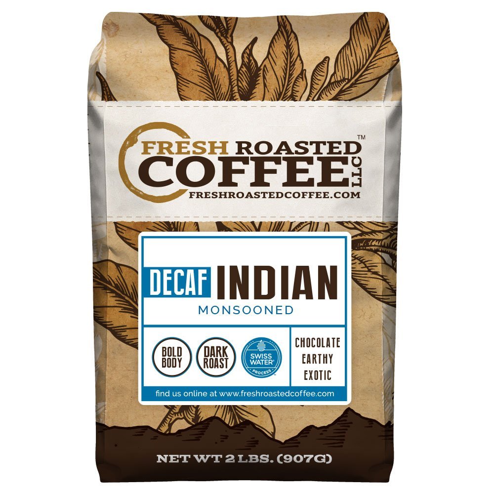 Indian monsooned coffee, whole bean, mountain water processed decaf coffee, fresh roasted coffee llc. (2 lb.)