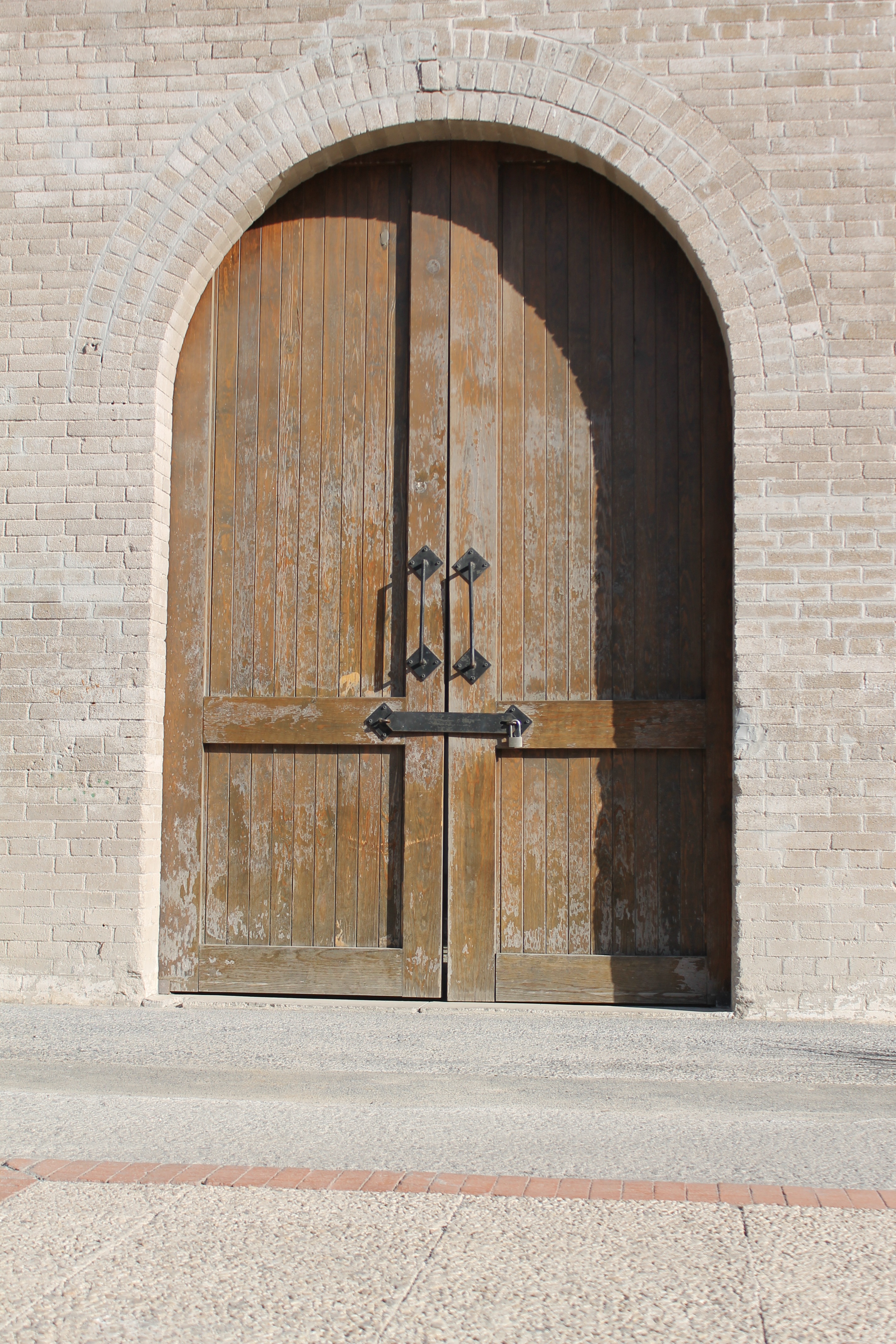 Free image/jpeg, Resolution: 2848x4272, File size: 3.71Mb, weathered arched wooden door in stone wall picture with tags: door, house, stone wall, wooden