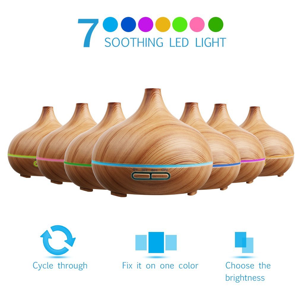 Essential oil diffuser, archeer 300ml cool mist humidifier with 7 color changing led lights ultrasonic aroma diffuser... n7