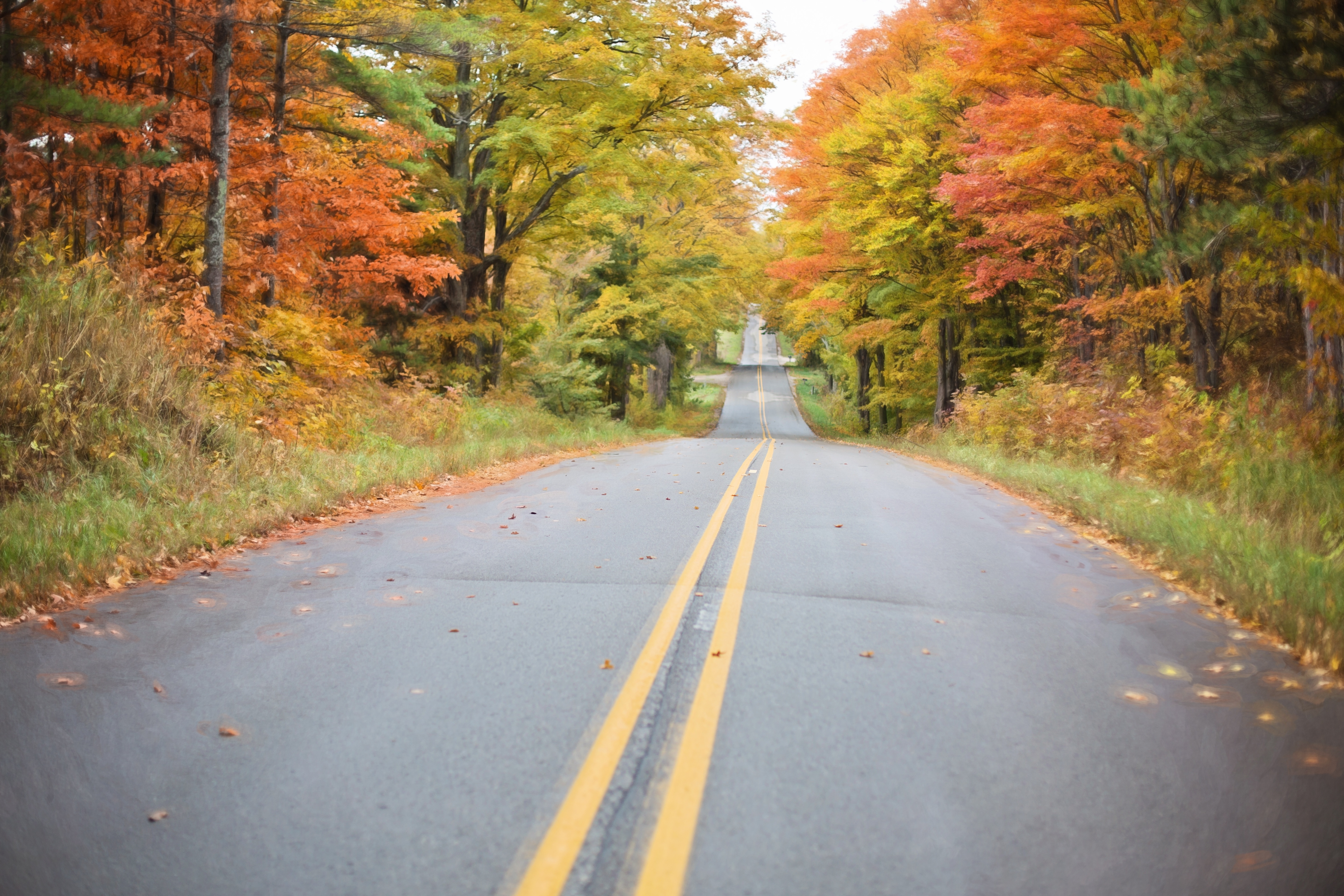 Free image/jpeg, Resolution: 5760x3840, File size: 5.19Mb, autumn view road yellow between colorful Forest picture with tags: autumn, fall, road, yellow, nature, leaf, orange