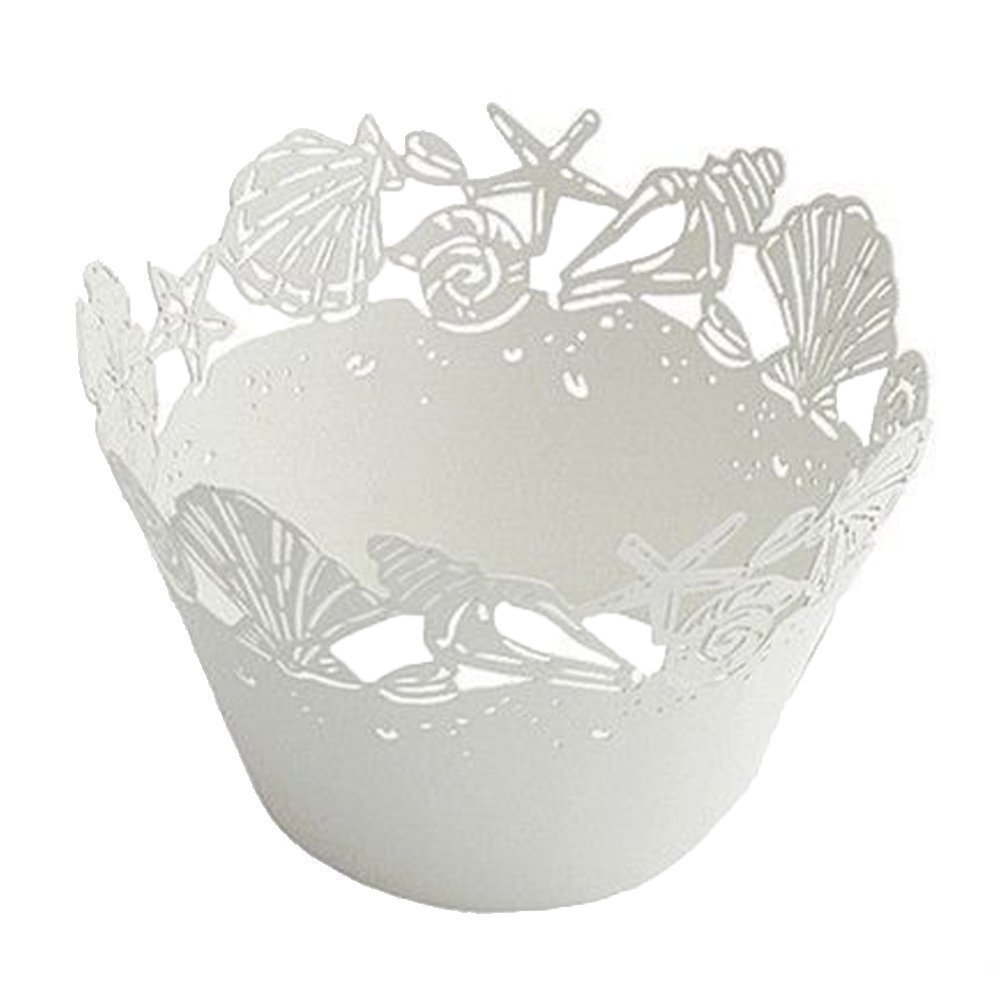 Free image/jpeg, Resolution: 1001x1001, File size: 70Kb, 60 PCS White Pearlescent Paper Beach Themed Wedding Sea Shells Seashell Cupcake Wrappers Baby Shower Wedding Party... picture with tags: blue handcart, home and kitchen, kitchen and dining, bakeware, decorating tools