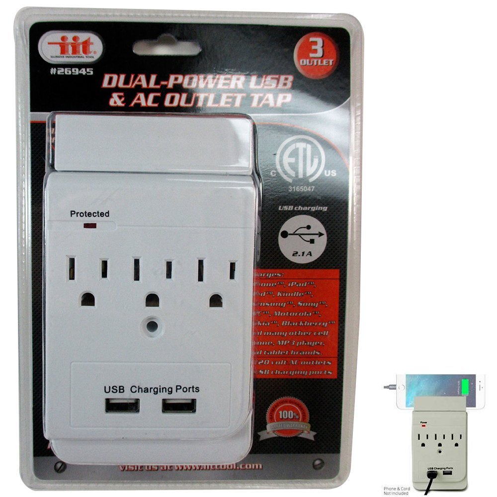 1pc 3 outlet surge protector wall tap 2 dual usb charging station 2.1 a ports ! n2