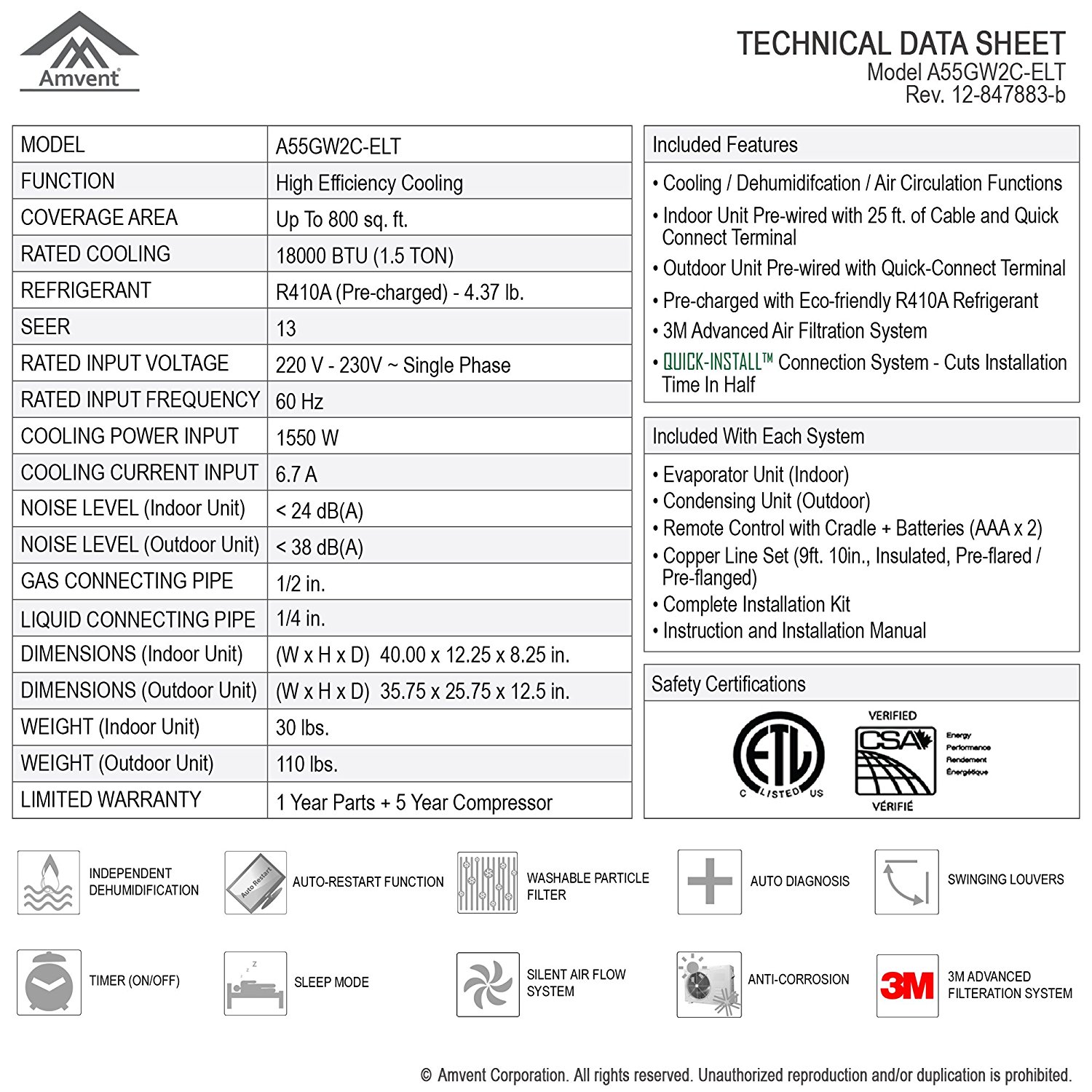 Amvent 18000 btu 1.5 ton ductless wall mount mini split room air conditioner ac conditioning cooling system unit n5