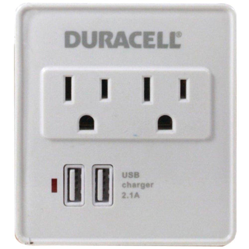 Duracell du6207 2-outlet surge protector with 2 usb ports (white) consumer electronics
