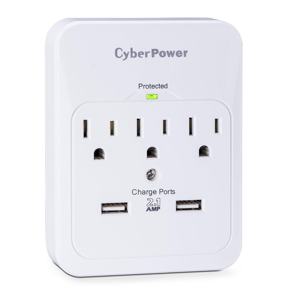 CyberPower CSP300WUR1 Surge Protector 3-AC Outlet With 2 USB (2.1A) Charging Ports N3