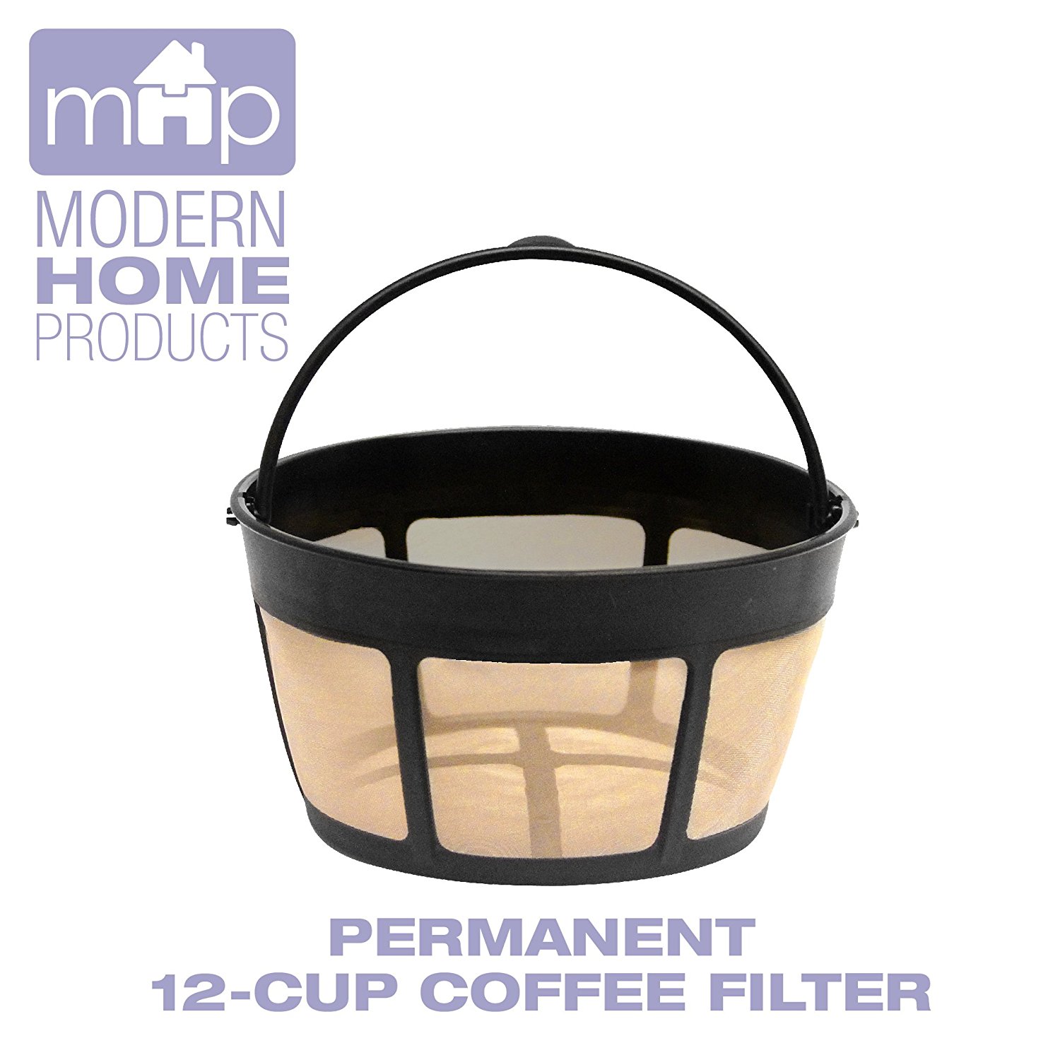 Permanent 12-cup basket shape gold tone coffee filter fits all coffee makers using 8-12 cup basket filters
