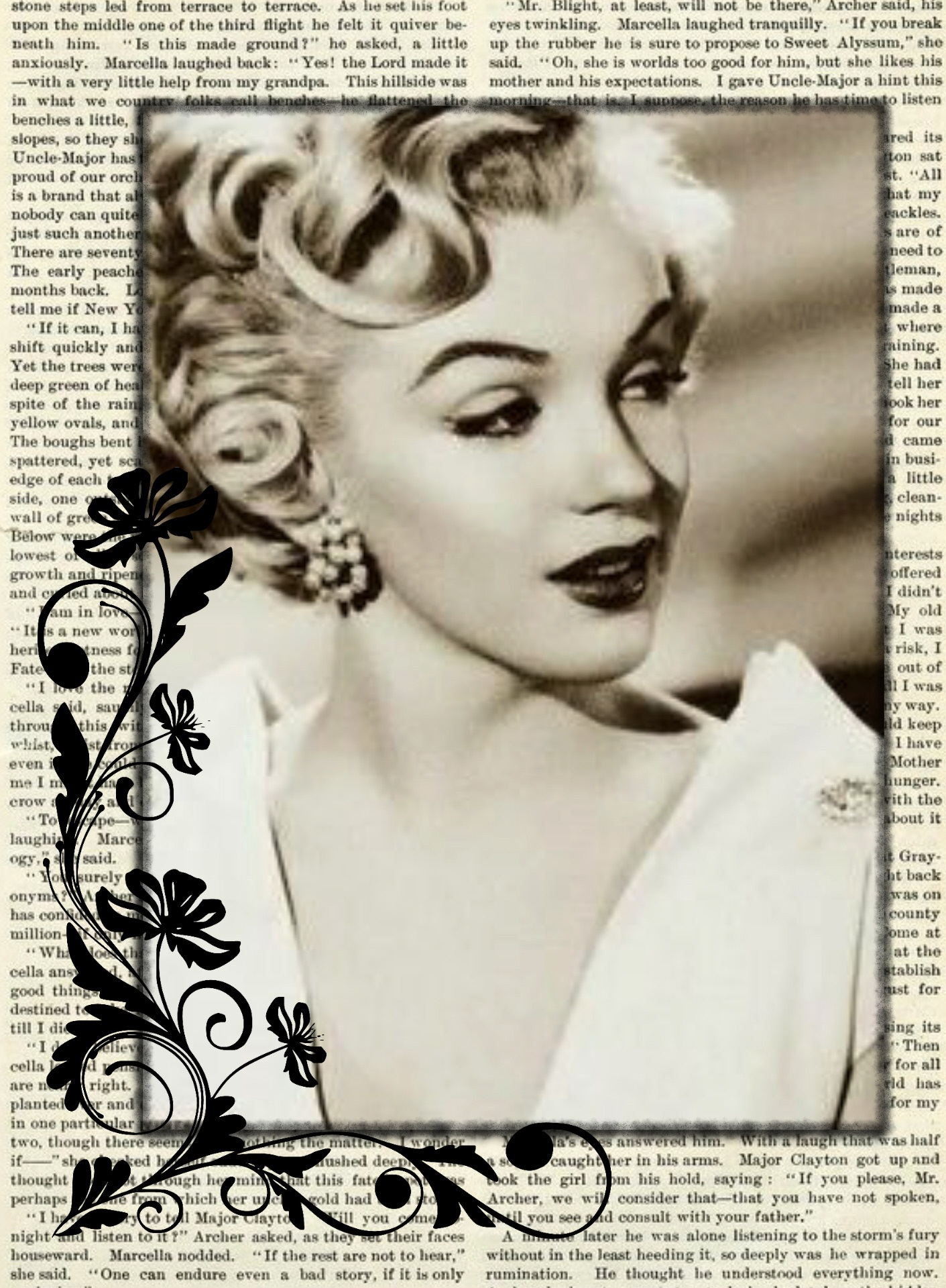 Free image/jpeg, Resolution: 1411x1920, File size: 672Kb, Black and white, vintage portrait of the beautiful Marilyn Monroe, with the frame and text picture with tags: vintage, actress, girl, portrait, marilyn monroe, beautiful, black and white