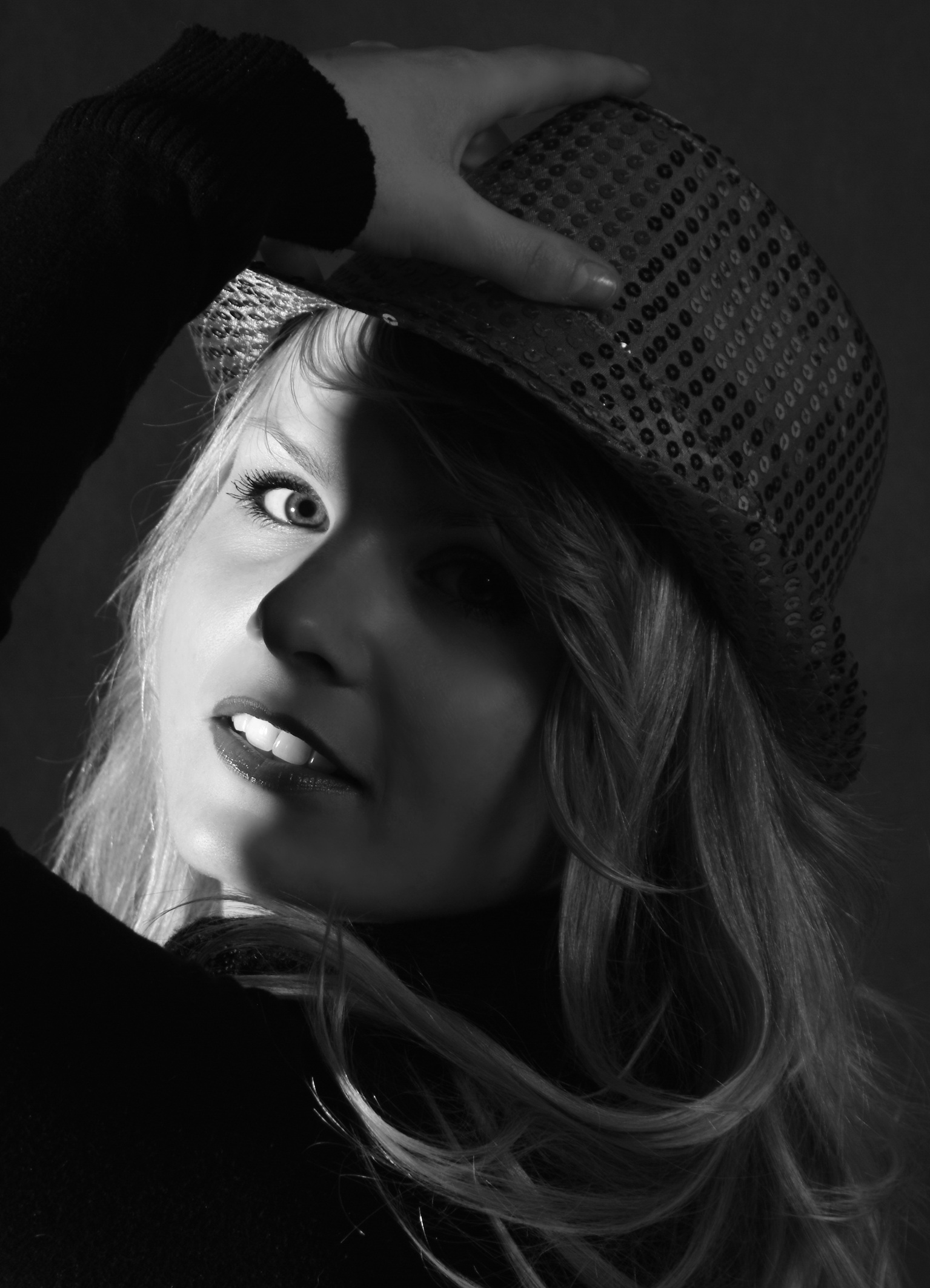 Free image/jpeg, Resolution: 1535x2126, File size: 506Kb, monocrome photo of Girl face Female Model picture with tags: girl, female, model, pretty, hat, portrait, face, woman