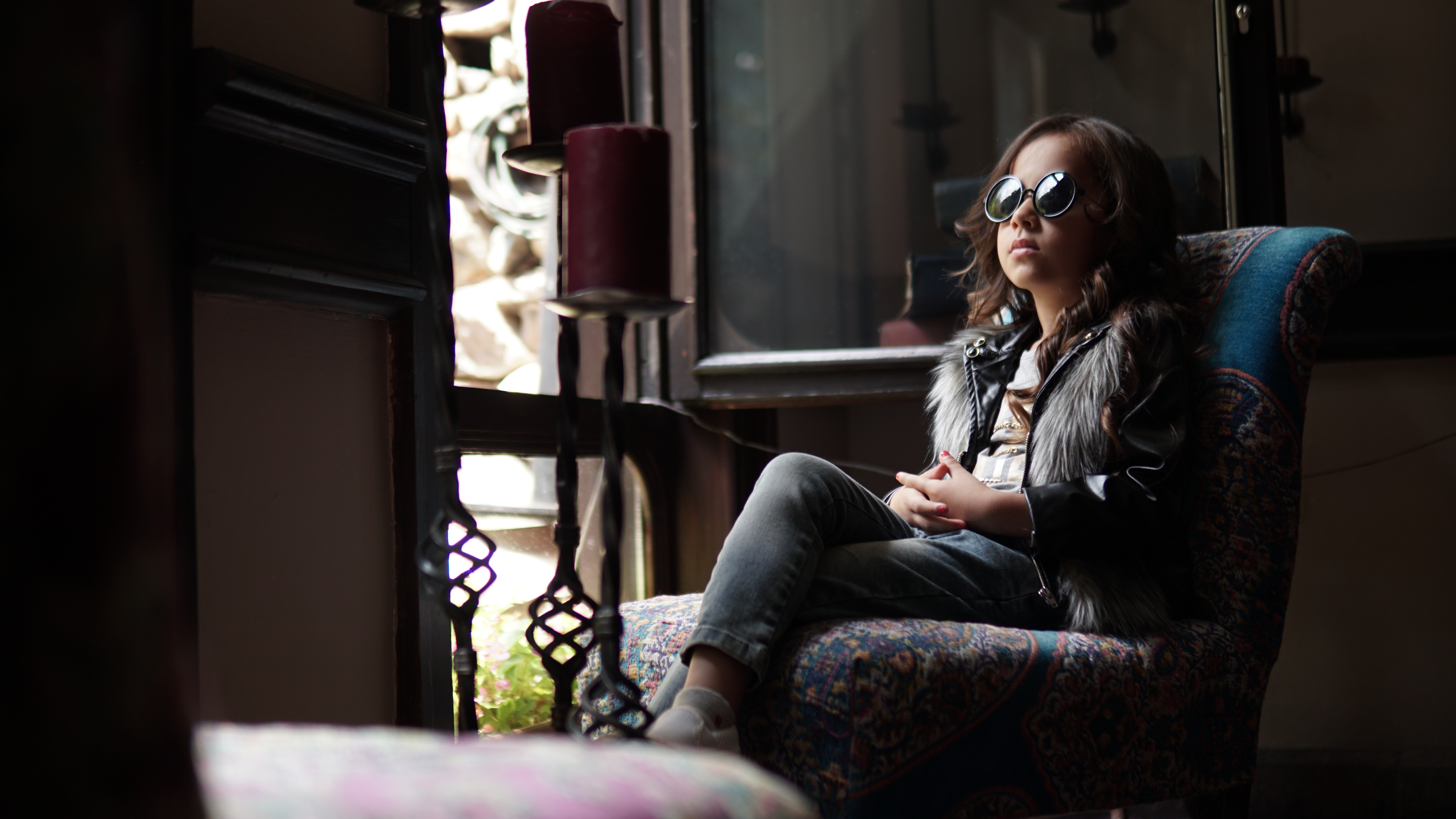 Free image/jpeg, Resolution: 6000x3376, File size: 2.67Mb, Kid girl sitting on armchair picture with tags: kid, girl, child, cute, young, woman, little, happy