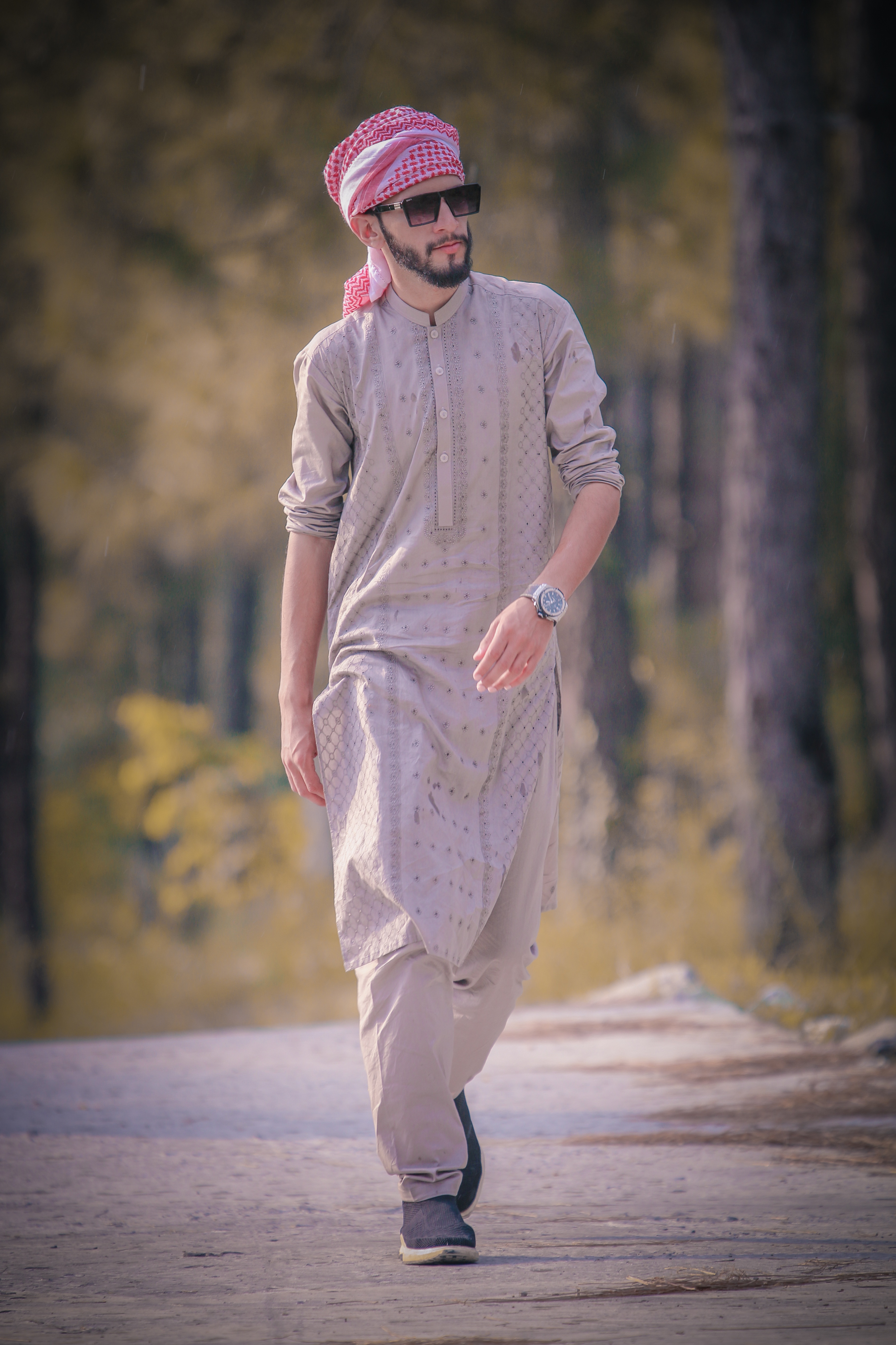 Free image/jpeg, Resolution: 3648x5472, File size: 3.17Mb, Kurta Fashion Styled Man walking picture with tags: kurta, fashion, style, glasses, faded, green, pose, man