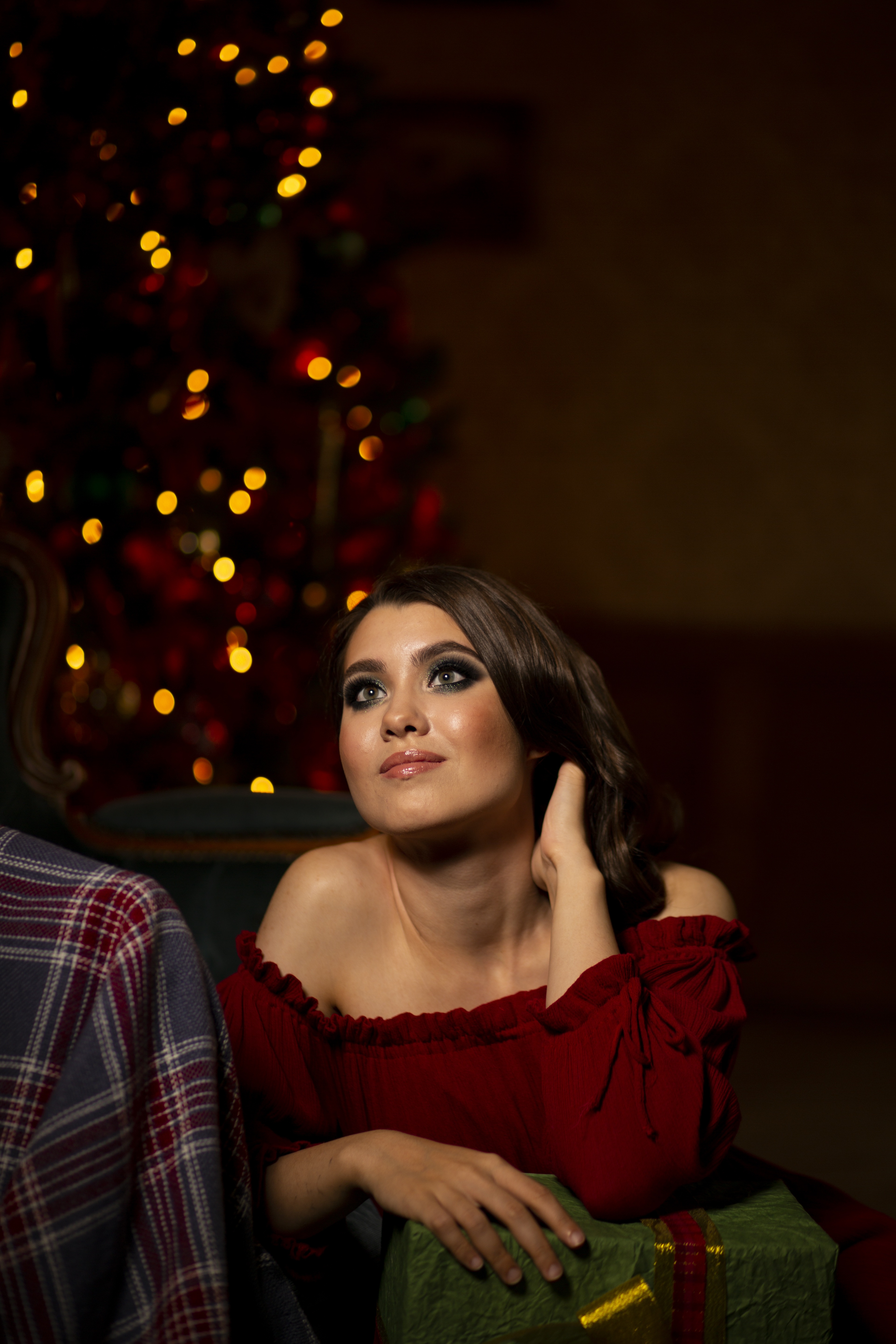 Free image/jpeg, Resolution: 3840x5760, File size: 3.01Mb, Girl Christmas Tree picture with tags: girl, christmas tree, christmas, holiday, swag, jewelry, tinsel
