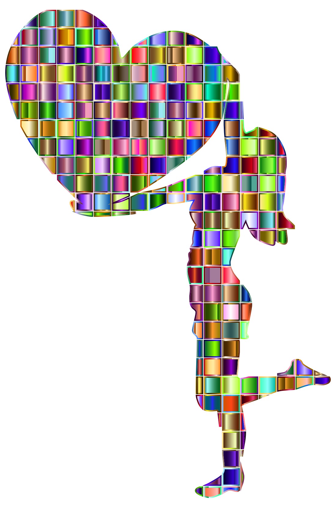 Free image/jpeg, Resolution: 1099x1656, File size: 193Kb, colorful prismatic mosaic, girl holding big heart picture with tags: colorful, prismatic, chromatic, rainbow, squares, mosaic