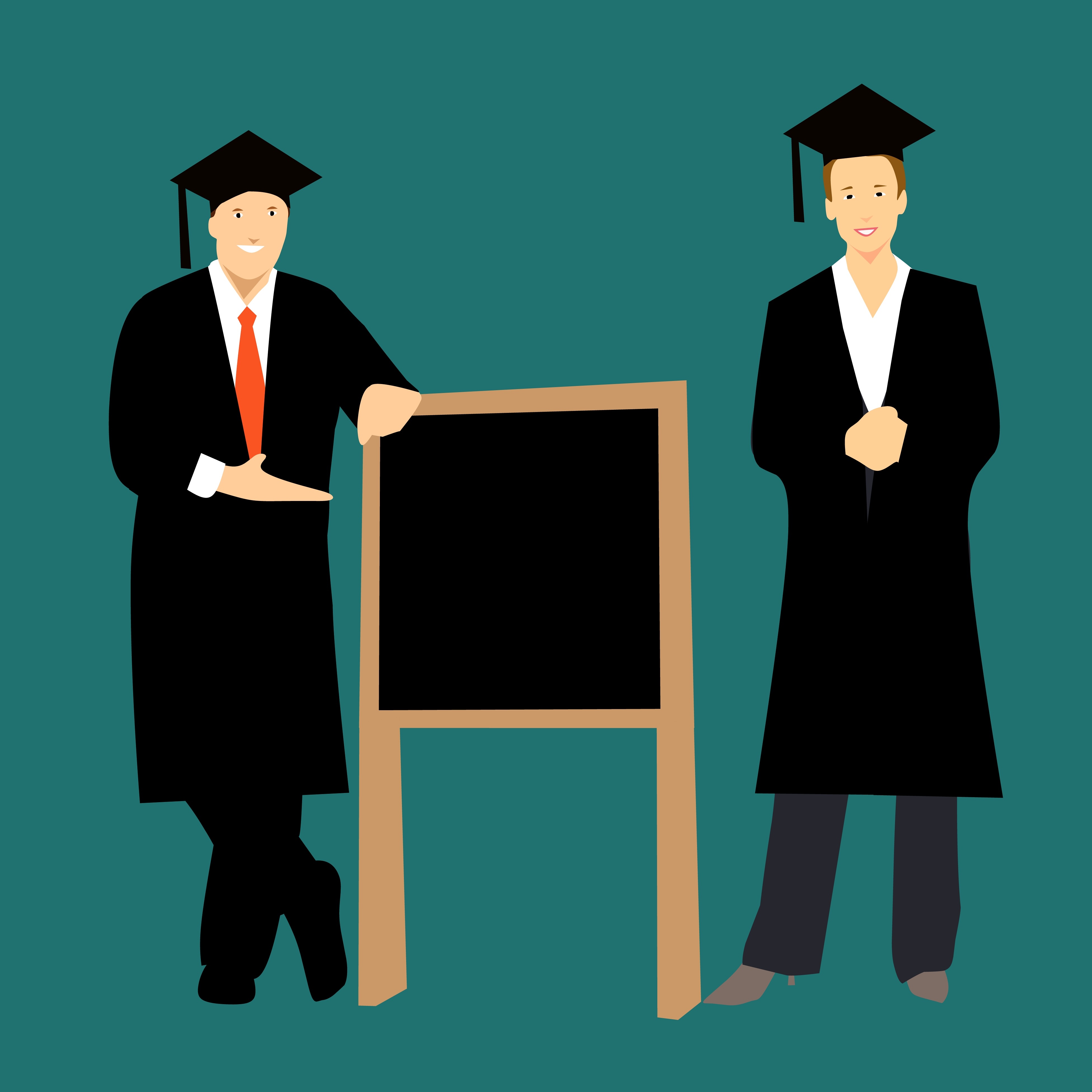 Free image/jpeg, Resolution: 3904x3904, File size: 303Kb, graduation cartoon character idea picture with tags: graduation, idea, bord, man, woman, standing, cap
