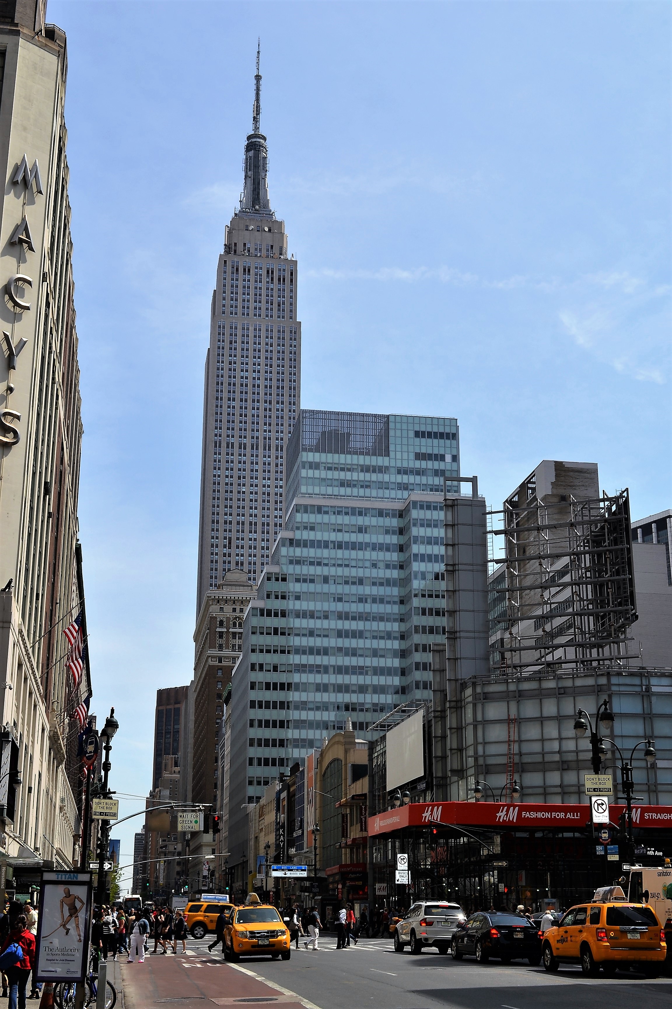 Empire state building on street, usa, manhattan, new york city