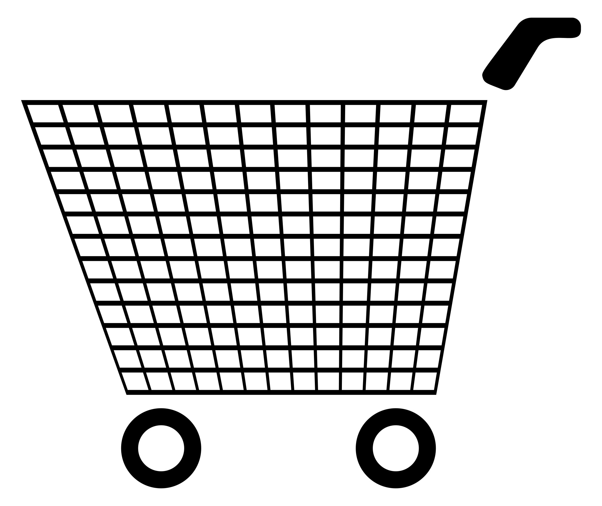 Free image/jpeg, Resolution: 2046x1720, File size: 183Kb, Black and white shopping cart with the grid, at white background, clipart picture with tags: business, buy, commerce, icon, shopping cart, black and white, grid, white background, clipart